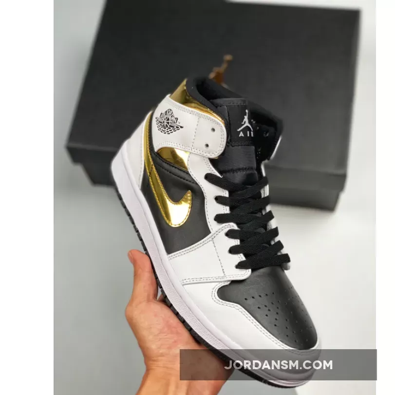 Air Jordan 1 Mid White/Black-Metallic Gold 554725-190 Restock