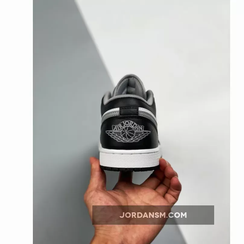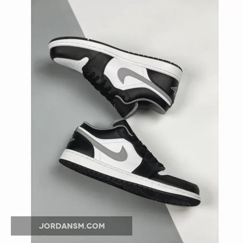The trio of black white and grey harkens back to the original 1985 “Shadow” release, and has been seen countless times on the Air Jordan 1 Low over the years — most recently on this Light Smoke Grey number from late last year. In fact, this pair is almost identical in build and blocking, with only a handful of tweaks separating one from the other. Differing only at the tongue (now black nylon with grey branding) and outsole (now black), the pair mimics the aforementioned with white leather uppers, black leather overlays and collars, and with grey liners and Wings logos in the rear — even the insoles are identical.