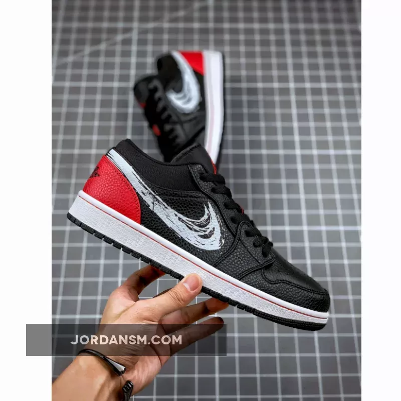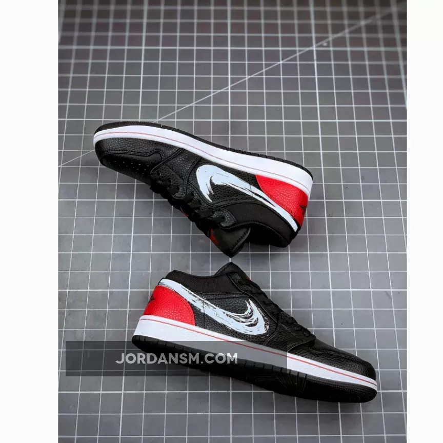 Unleash your inner artist with the brand new Jordan 1 Low Brushstroke Swoosh. A literal stroke of genius, this colourway combines a contemporary silhouette with a classic art form, resulting in a truly unique release that definitely should not be missed.Crafted from an exquisite tumbled leather throughout, the black upper acts as a canvas for a clean white Nike Swoosh that elegantly glides across the lateral and medial side panels. The legendary Jumpman silhouette is finely embroidered onto the tongue, while complementary bold red hues arrive at the heel, where you’ll also find the AJ1’s signature winged basketball motif that’s almost as iconic as the shoe itself.What is there not to love about the Nike Air Jordan 1 Low Brushstroke Swoosh? Part of the ever so popular Brushstroke Pack, make sure you keep it locked at Our Store Supplier if you a pair in your current collection.