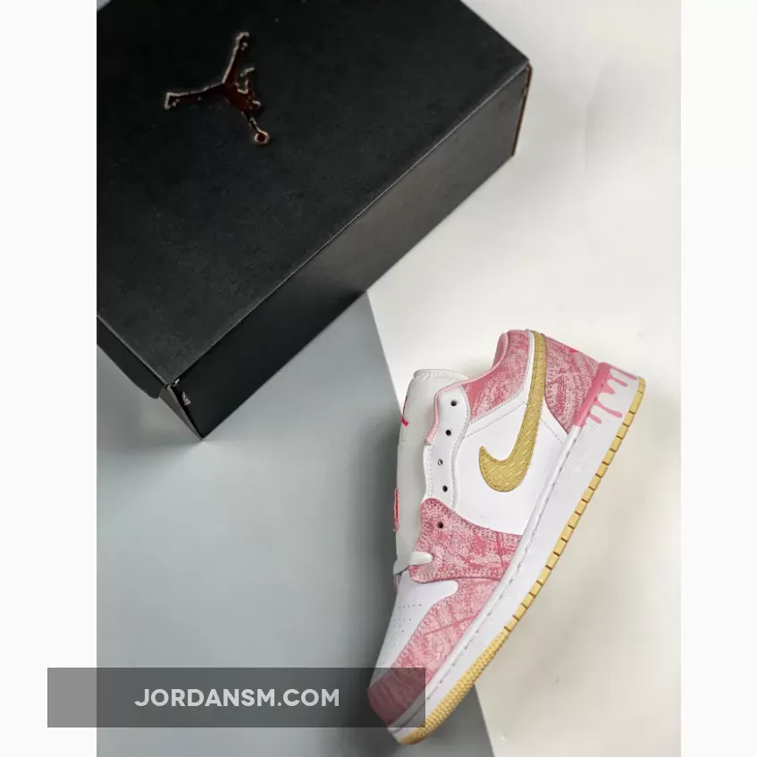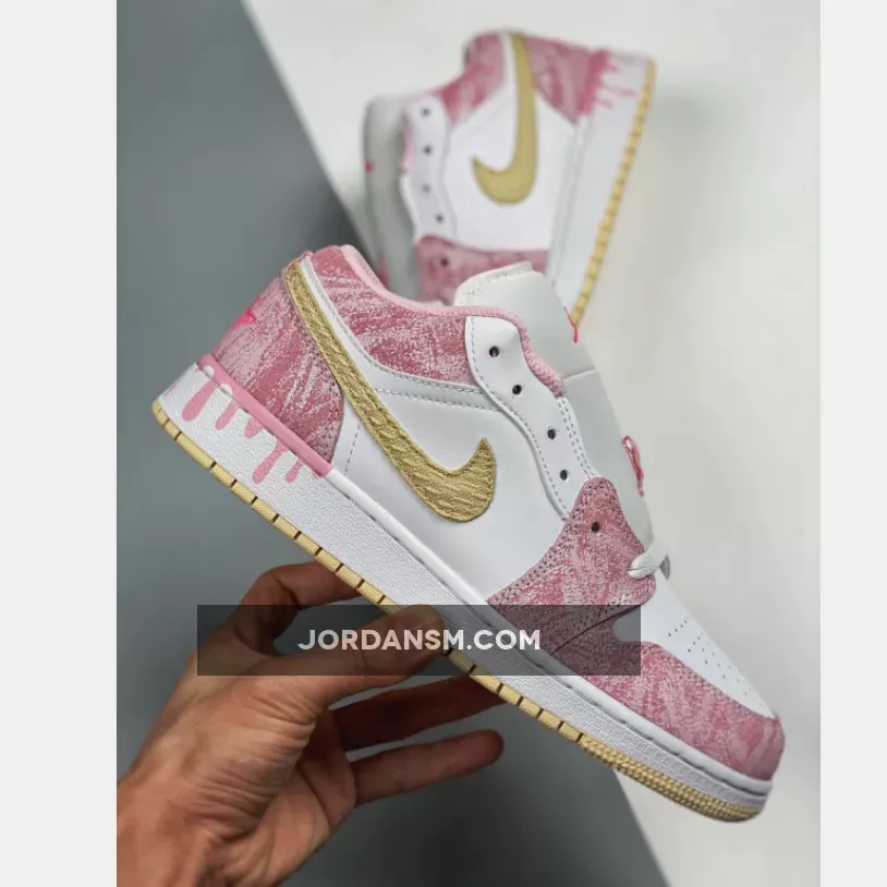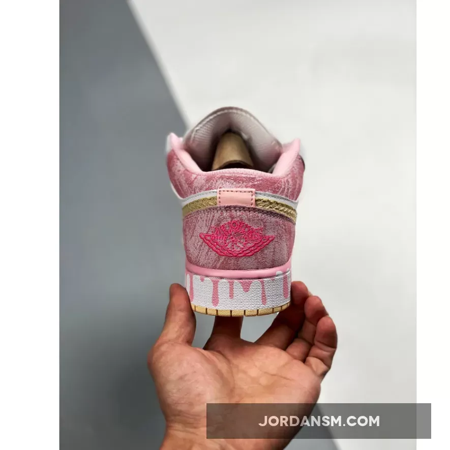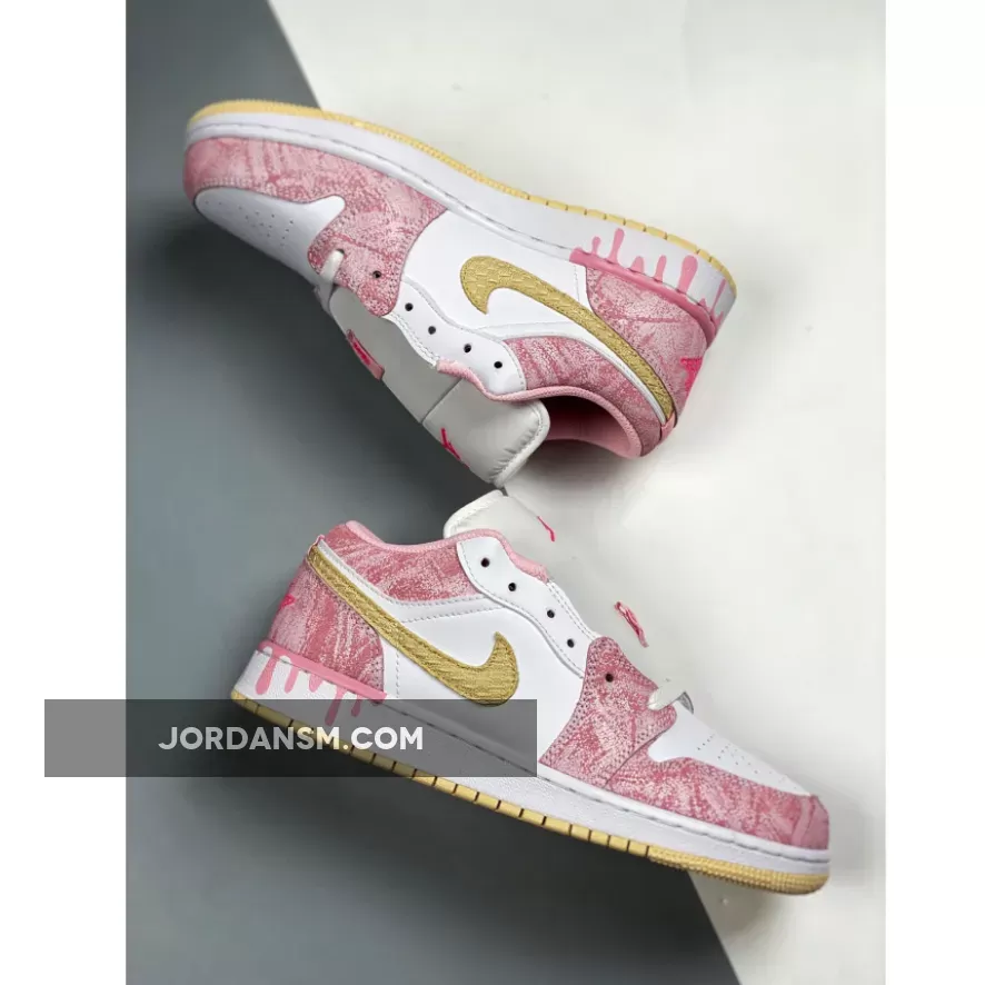 The Jordan 1 Low GS Paint Drip Arctic Punch is part of a long line of offerings from Nike this Easter. This ice cream-inspired AJ1 Low is the perfect, pink addition to your rotation this spring, with tumbled, suede, pink overlays dressing the toe cap, around the ankle and the heel. Michael Jordan’s legendary Jumpman logo sits in bright pink at the top of the tongue, matching to the Wings insignia embroidered in neon on the heel of this J. All tied up with a white lace unit that matches the rest of the smooth upper, this Jordan is not complete without a little extra detailing that gives it its finishing touches. This is bound to be a sell-out once it is released, so to be in with the best chance of copping the Air Jordan 1 Low GS Paint Drip “Strawberry Ice Cream”, keep it locked to Our Store Supplier.