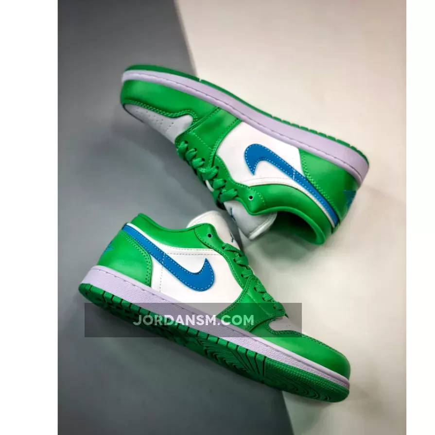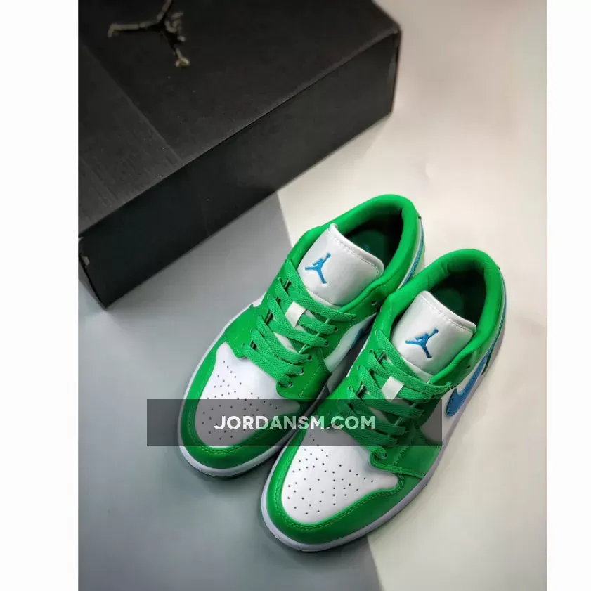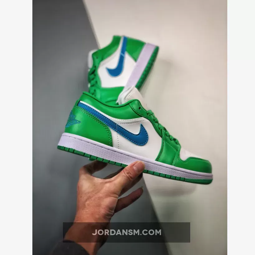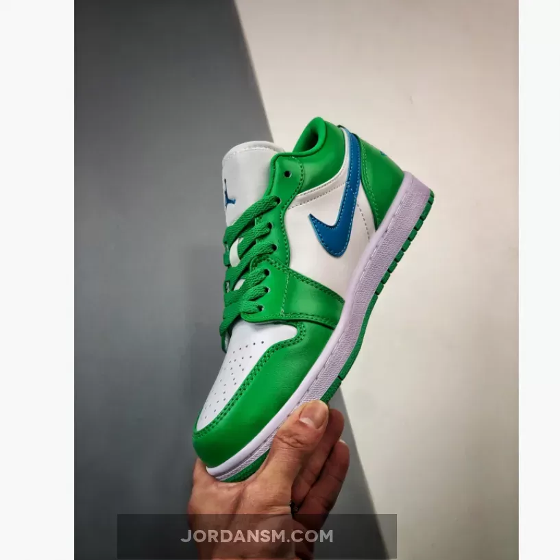Michael Jordan’s Air Jordan 1 basketball trainers from 1985 have made their way to become one of the most popular footwear models in the present day. The Peter Moore-designed sneakers have emerged in countless colourways, with the AJ1 Low receiving similar hype to the AJ1 High. Here we have a closer look at one of the latest additions to Jordan Brand’s release line up: the Air Jordan 1 Low Green White Teal.Like most Air Jordan 1s, this pair arrives with a full-leather upper. The toe boxes, tongues, and sidewalls opt for a crisp white shade to invite other colours to the counterparts like the teal-coloured branding details and green-coloured toe caps, shoelaces, eyestays, and heel tabs.