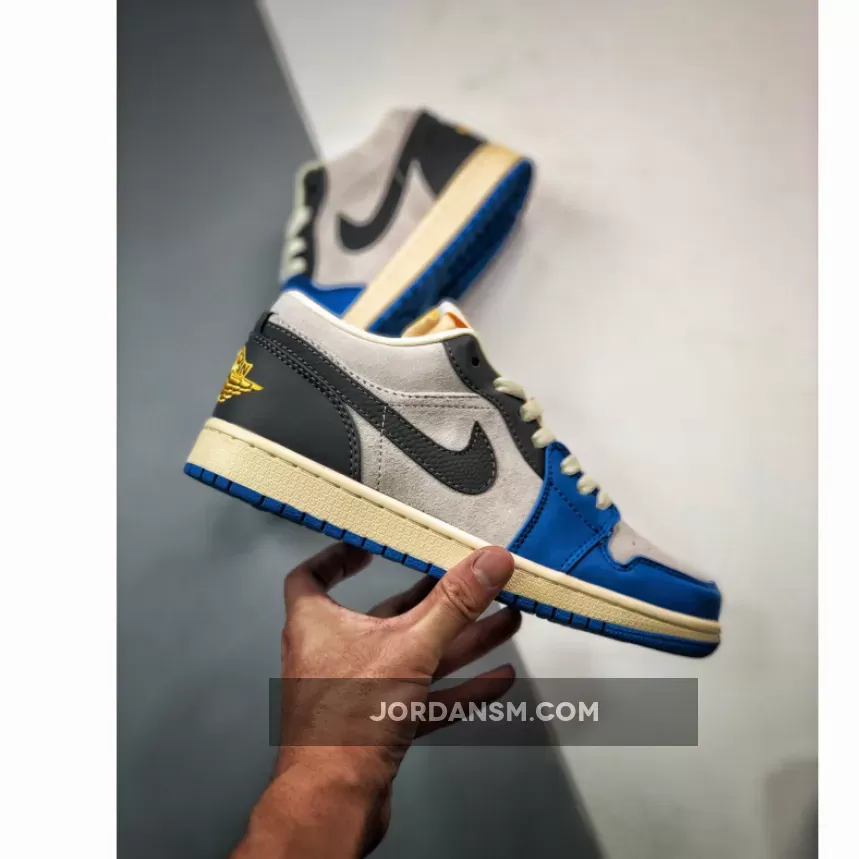 Playful yet elegant, the Air Jordan 1 Low UNC Grey boasts a balanced colourway featuring a mix of bright and muted hues. A smooth white leather base serves as the perfect background for the bold “University Blue” forefoot overlays and grey panellings at the backside to steal the spotlight. This Air Jordan 1 Low wraps up with a touch of deconstructed aesthetic thanks to the exposed tongue foam and dirty white laces.