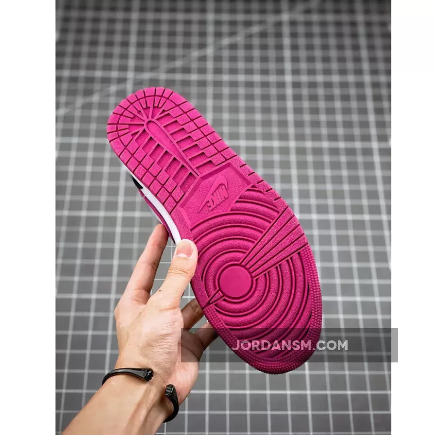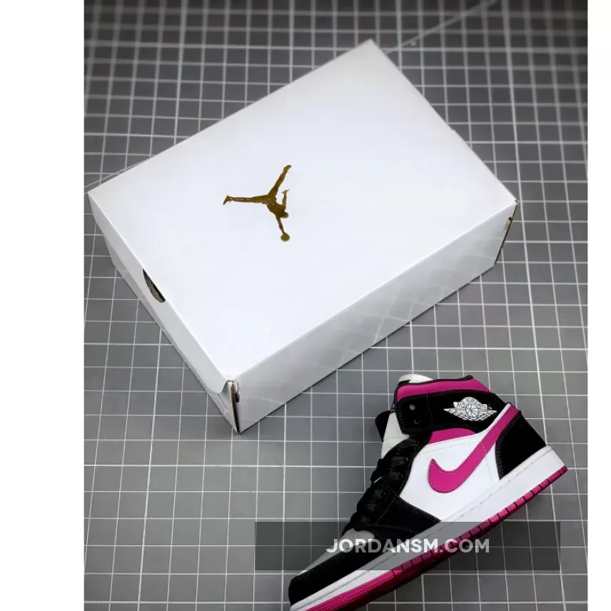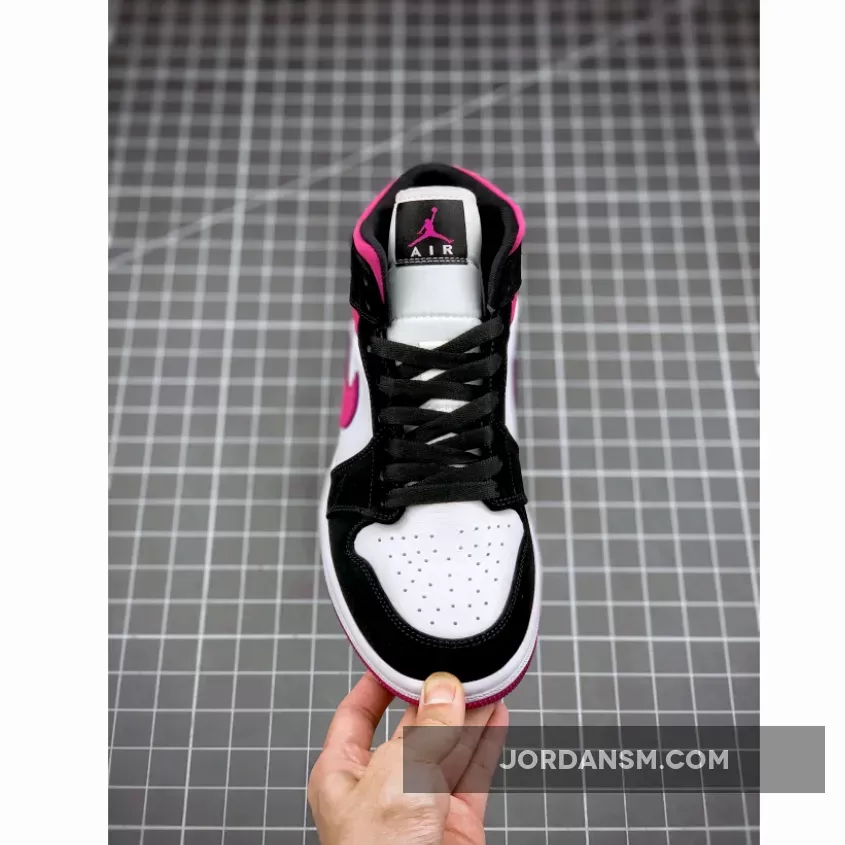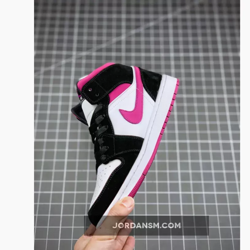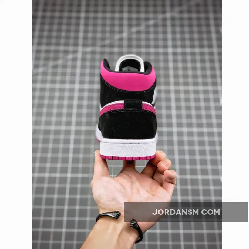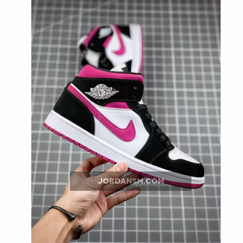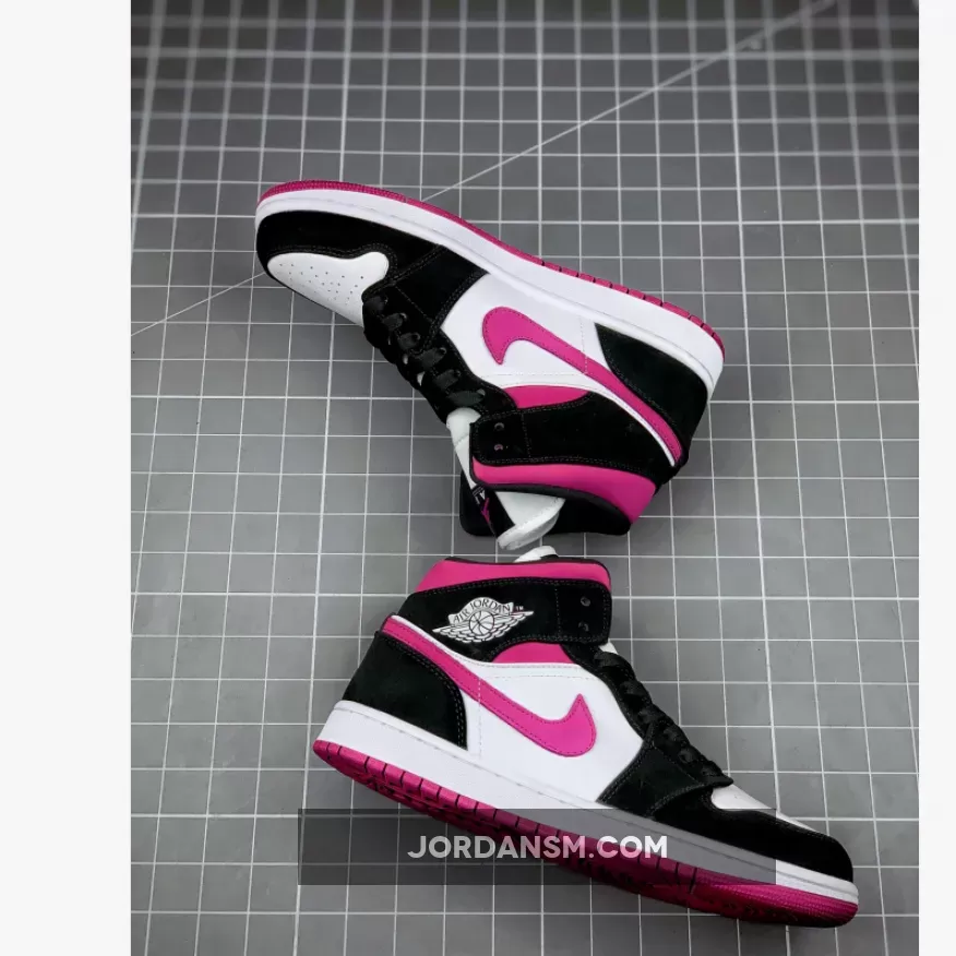 The Air Jordan 1 Mid Magenta W is a women’s sneaker comprising a magenta, black and white color scheme.