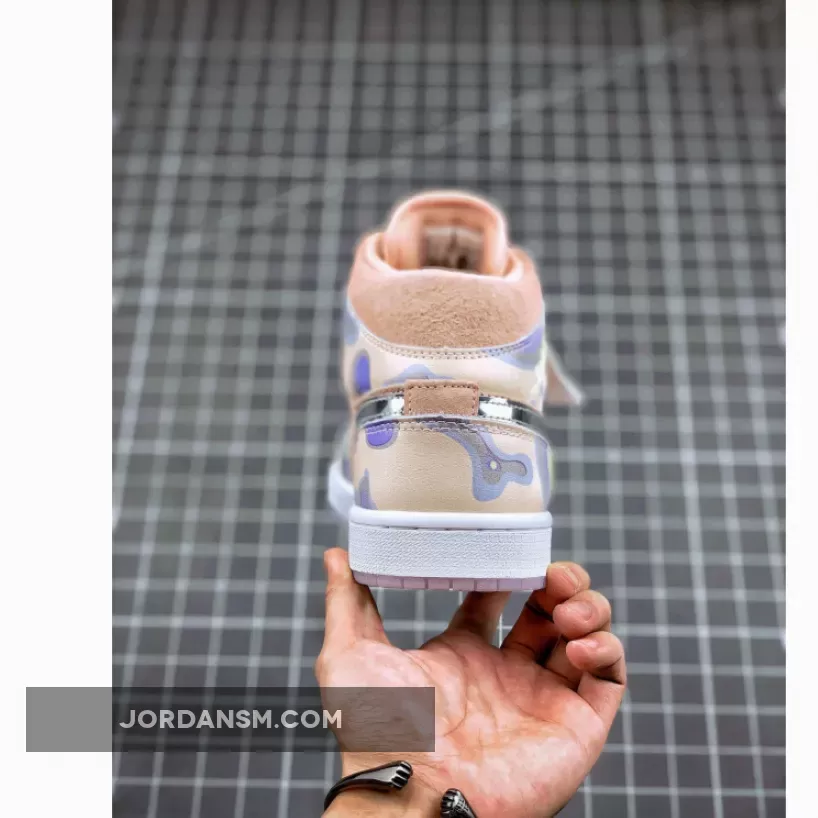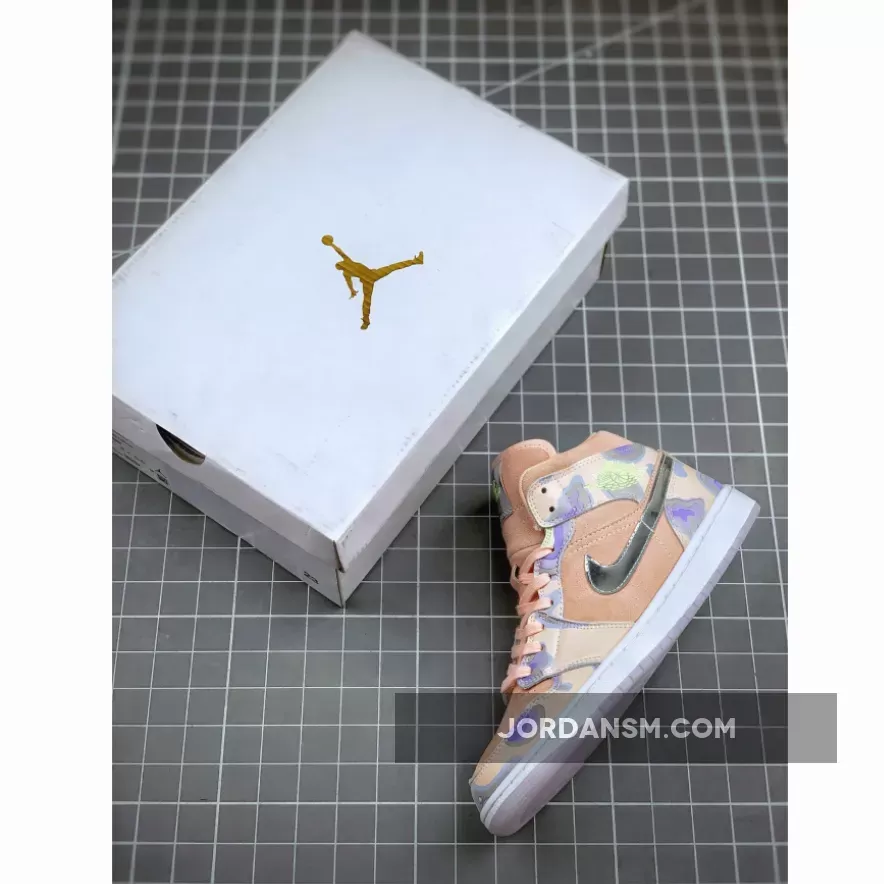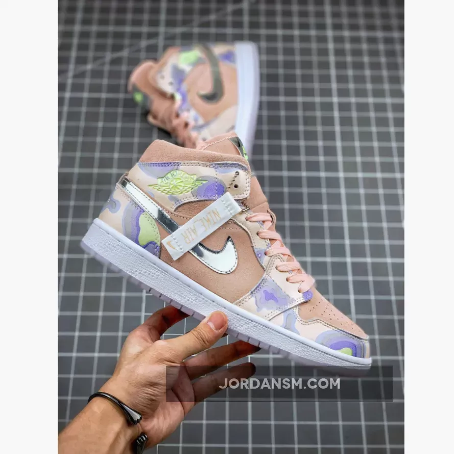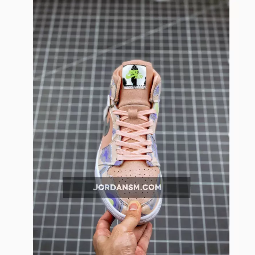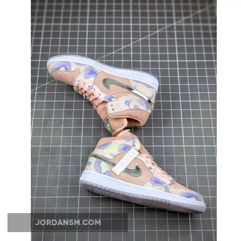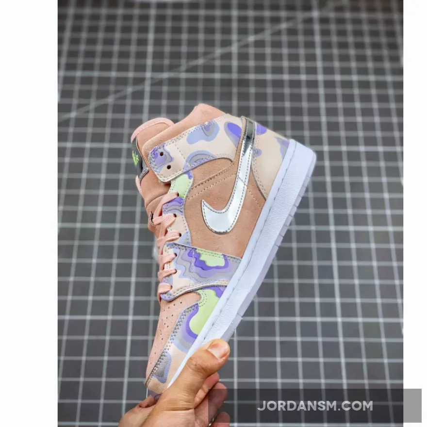 Added dashes of green appear across the upper with the iconic AJ Wings logo debossed into the lateral side of the collar whilst the ‘Nike Air’ logo graces the tongue. Metallic silver Swooshes sit shining on both sidewalls stretching back to the heel of this pink purple AJ1. Set to drop as part of the ‘P(HER)SPECTIVE’ pack with galaxy-themed Air Force 1, there’s no doubt this peach Jordan High will be an instant sell-out.