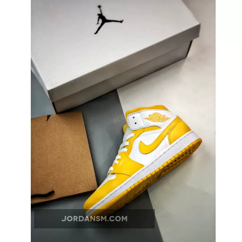A pair that radiates an energetic vibe, the Air Jordan 1 Mid White Yellow features a vibrant two-toned colourway. A smooth white leather base covers the perforated toe box, side panels and collar while the overlays and Swooshes are dressed in bright yellow. Classic Air Jordan 1 Mid details such as MJ’s Wings logo and Nike branding on the tongue are also dipped in the same sunny hue.