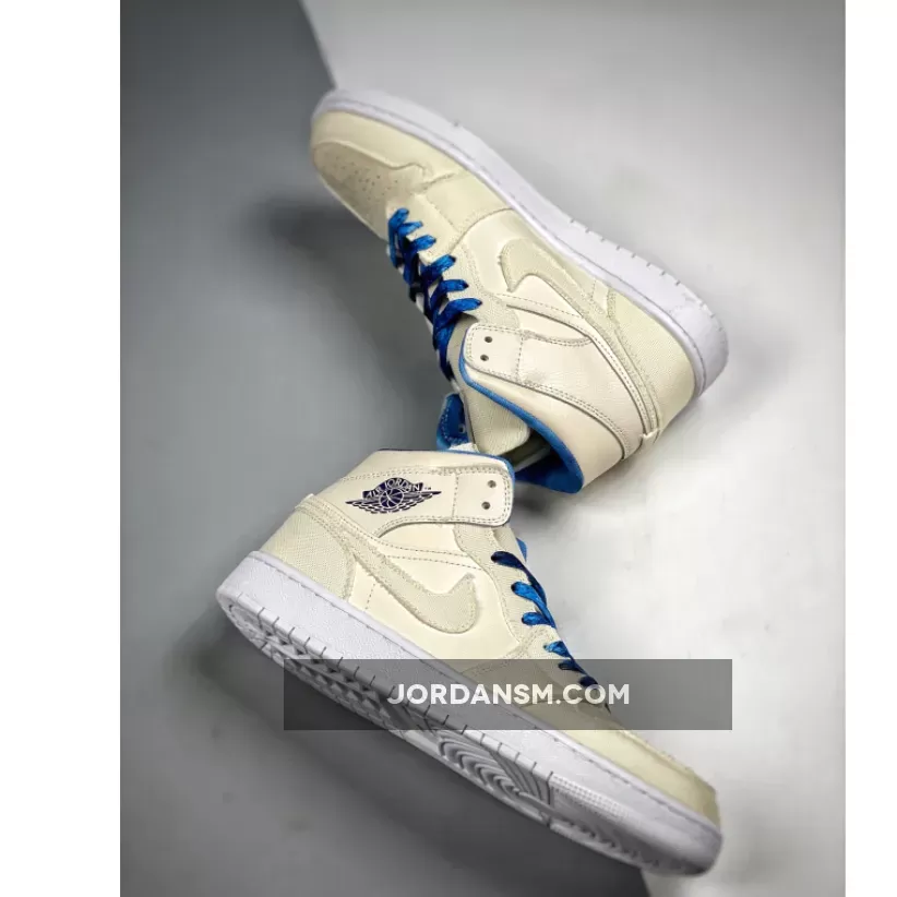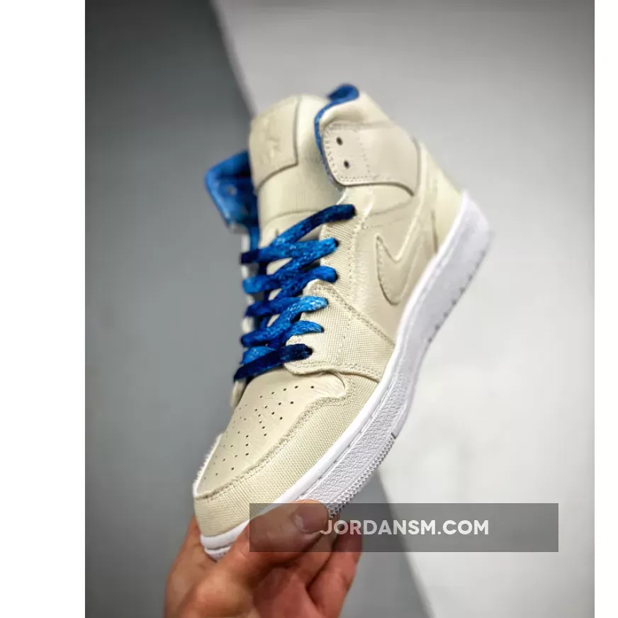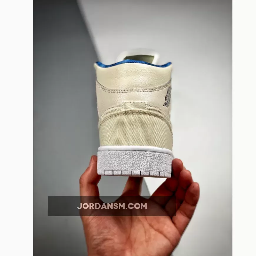 Created for fans of fashionable lifestyle-geared colourways, the Air Jordan 1 Mid Sanddrift revels in an easy-to-style, minimalist look. The sandy-hued upper features an interesting mix of textures: smooth leather at the perforated toe, tumbled leather at the quarters and ankle flap, and durable canvas fabric for the Swoosh, mudguard, eye stays and heel.