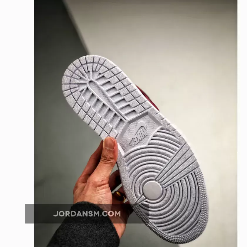 This offering of the mid-top Air Jordan 1 features White leather on the toe and Swoosh with Black leather overlays on the toe, side panels and upper collar. Noble Red is used around the heel completed with a solid White rubber sole.