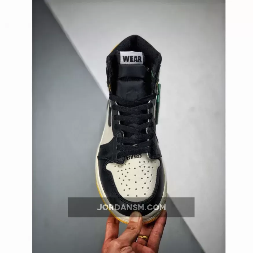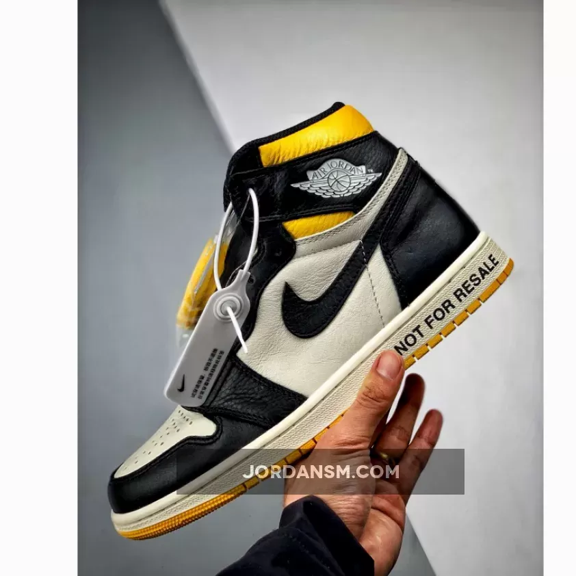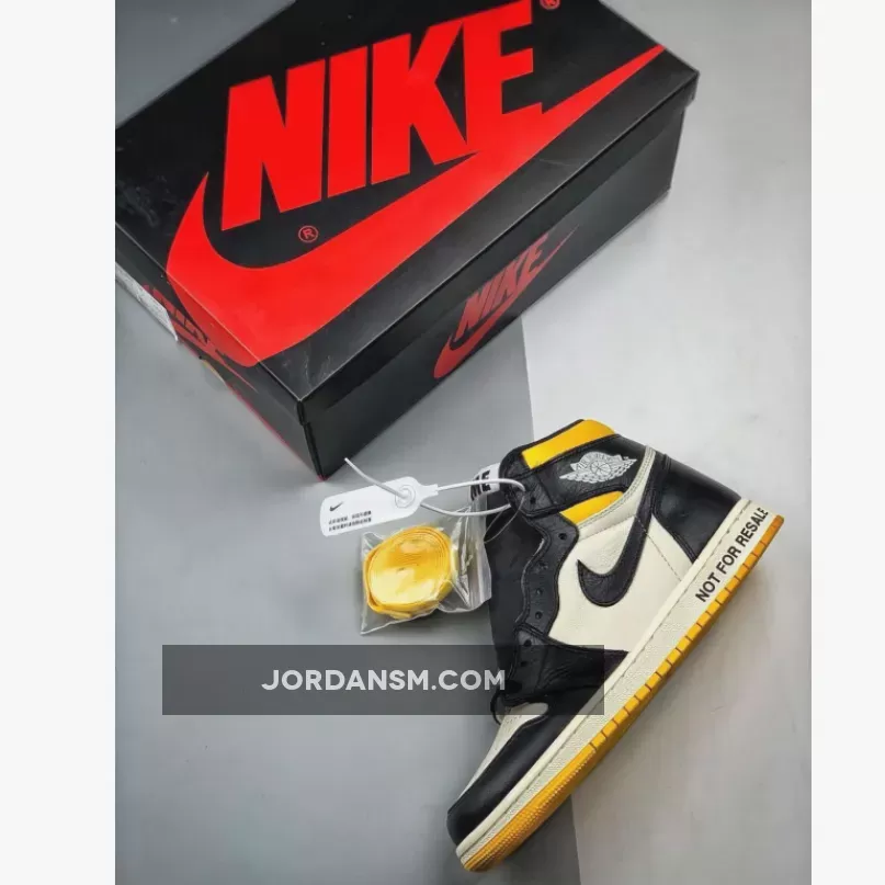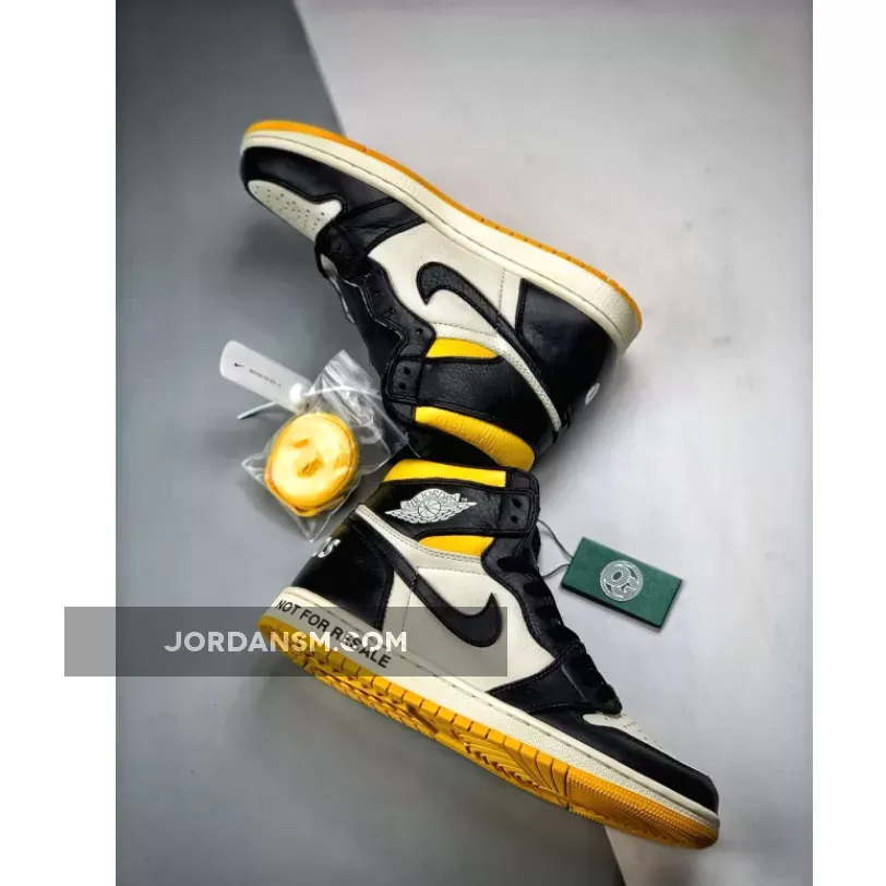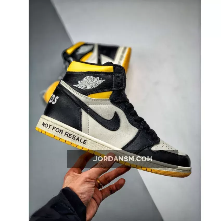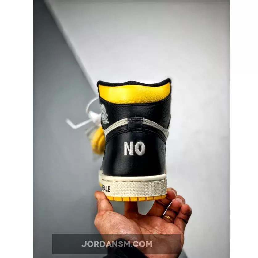 Dressed in a Sail, Black, and Varsity Maize color scheme. This Air Jordan 1 is highlighted with several different texts throughout the entire shoe. Those include “Wear Me” on the tongues, “No Photos” on the heels, “Please Crease” on the toes, “Sorry, This Pair Is Not Numbered” on the inner lining of left shoe, and “General Release” on the right.