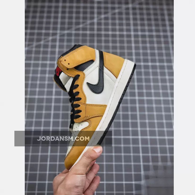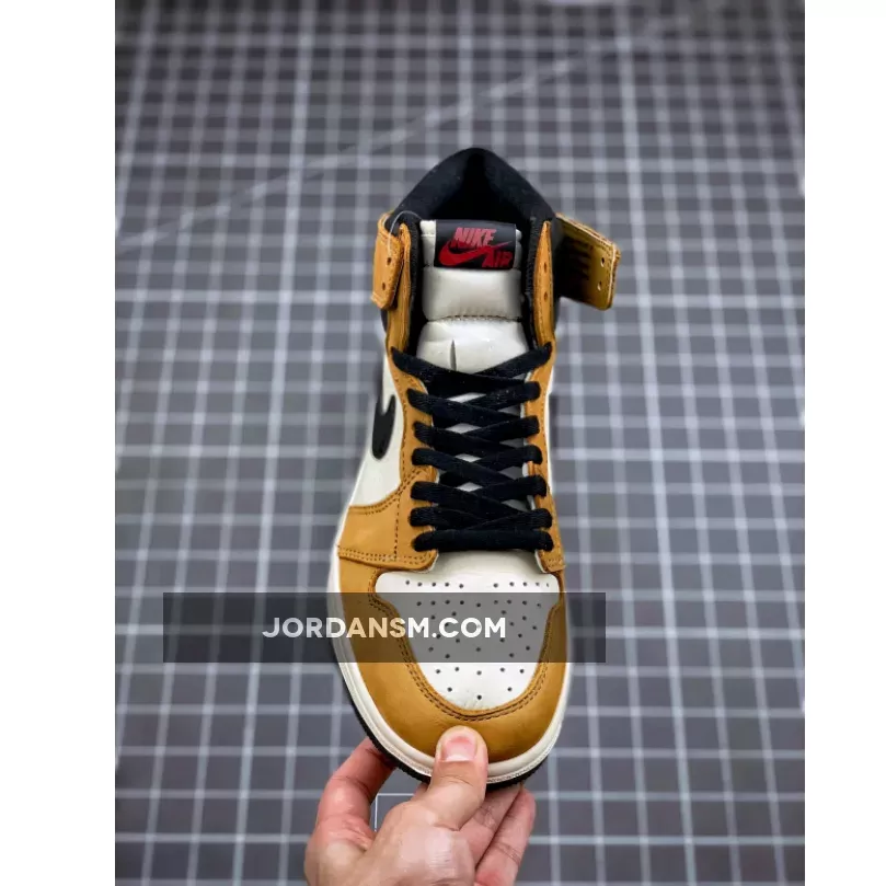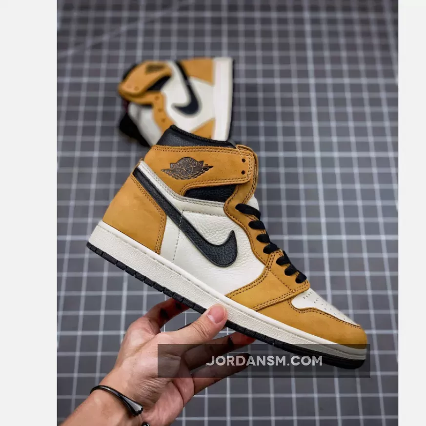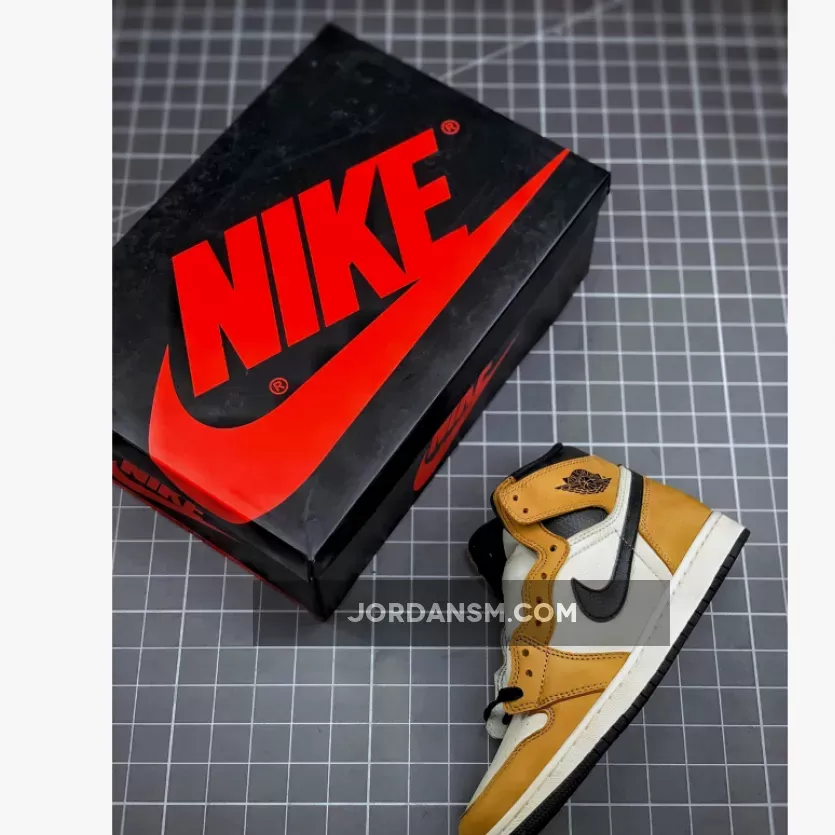 Nicknamed ‘Rookie of the Year’, this Jordan 1 is inspired by the iconic golden brown shirt that Michael Jordan wore during his ‘Rookie of the Year’ press conference on April 30th, 1985. Adorned with statistics from his legendary ROY campaign, other highlights include a bright red Nike Air tongue tag, black laces, Swoosh, and outsole.