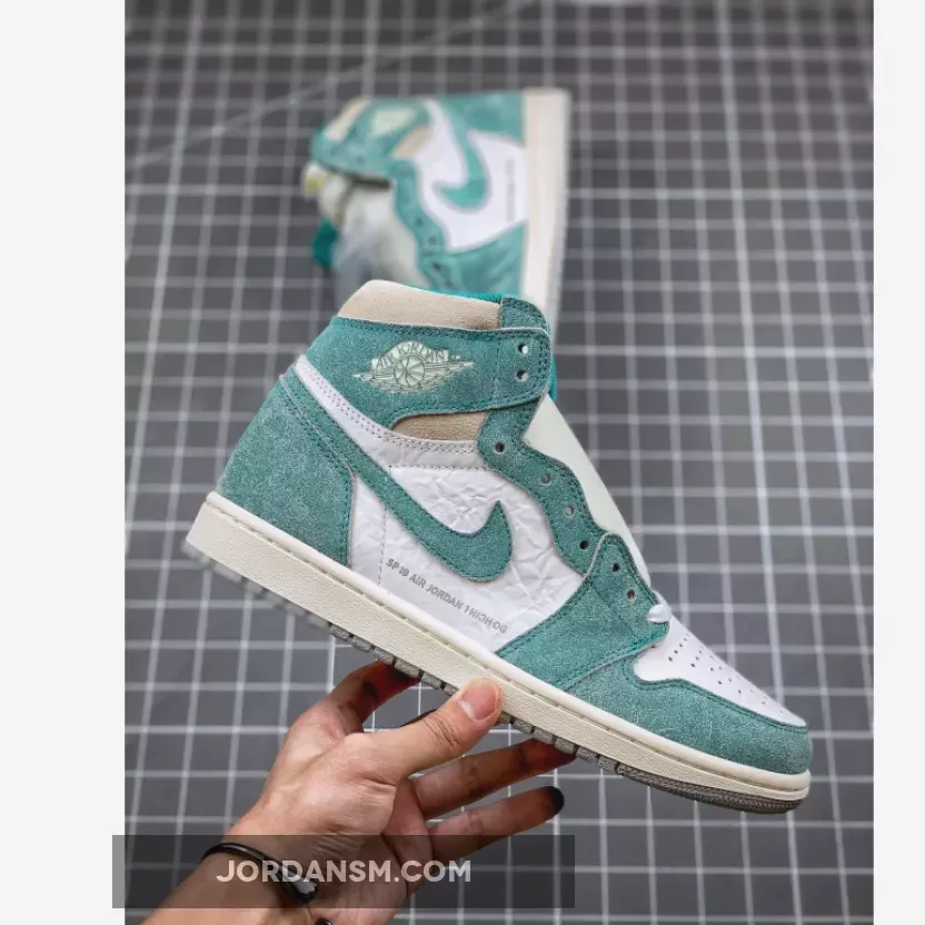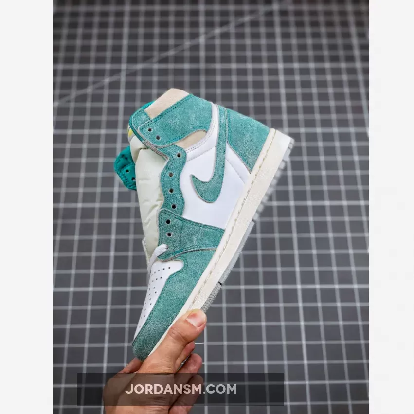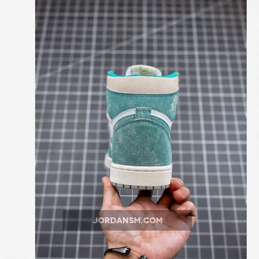 Opting to borrow the classic colour blocking of the Jordan 1 Chicago, the Jordan 1 Turbo Green features a white leather base that’s accented by ‘Turbo Green’ suede overlays.