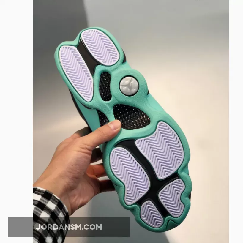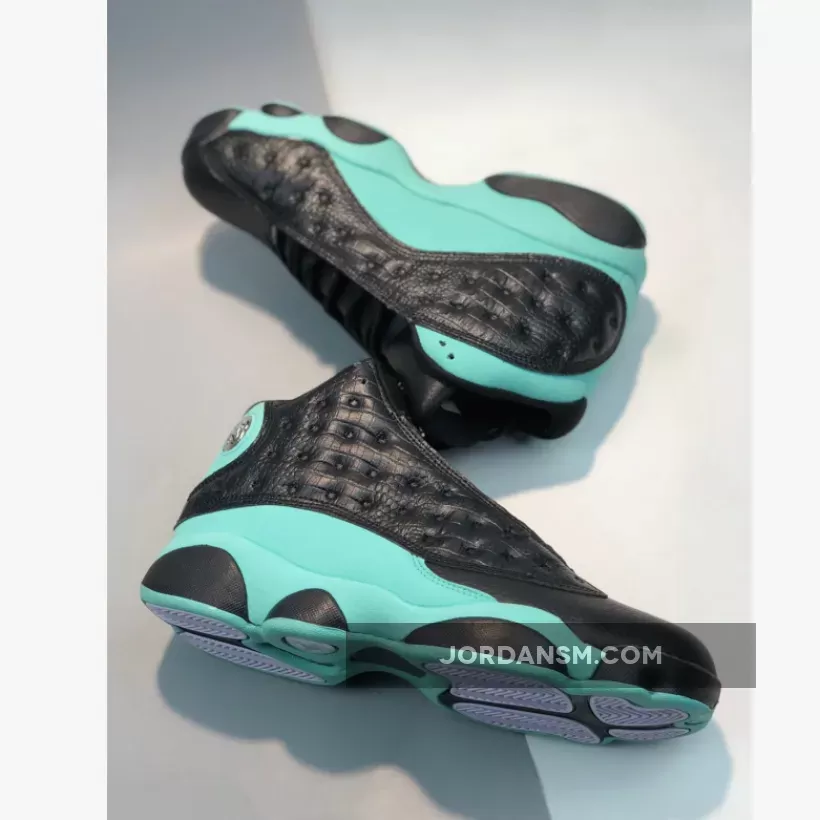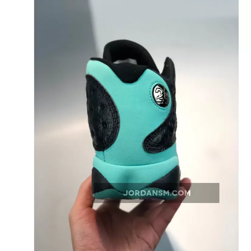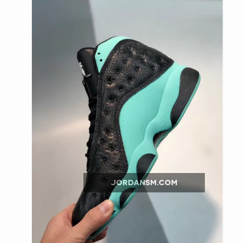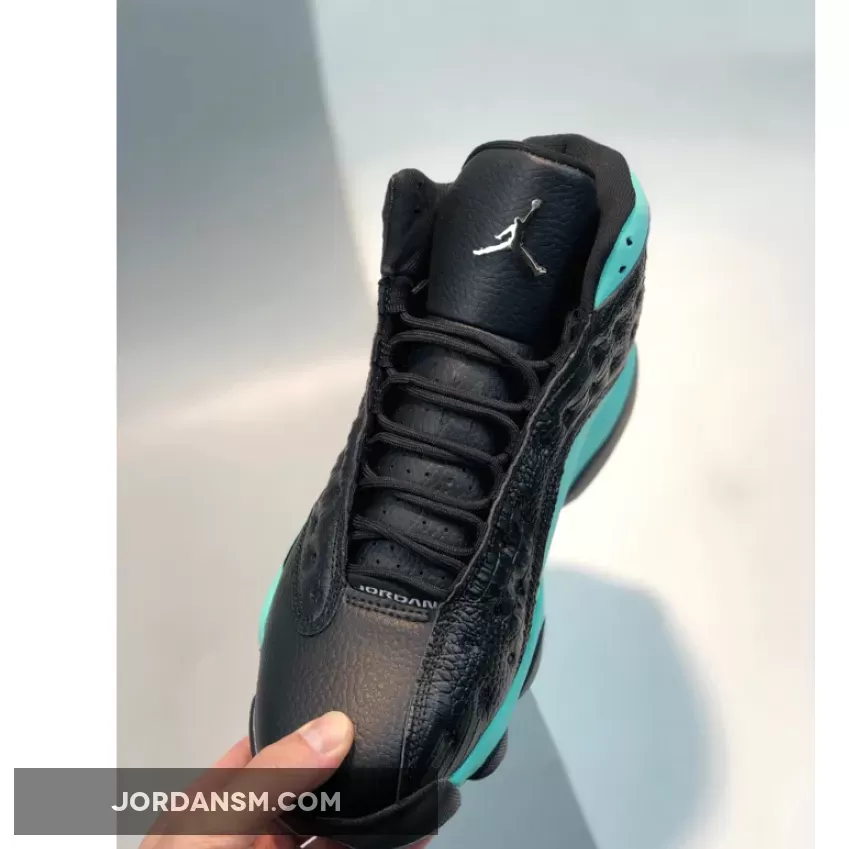 Dressed in a Black, Island Green, and Metallic Silver color scheme. This Air Jordan 13 features a Black wrinkled croc-like leather upper paired with Island Green contrasting accents throughout. Its signature hologram and Jumpman tongue logo are done in Metallic Silver completed with a Black rubber sole.