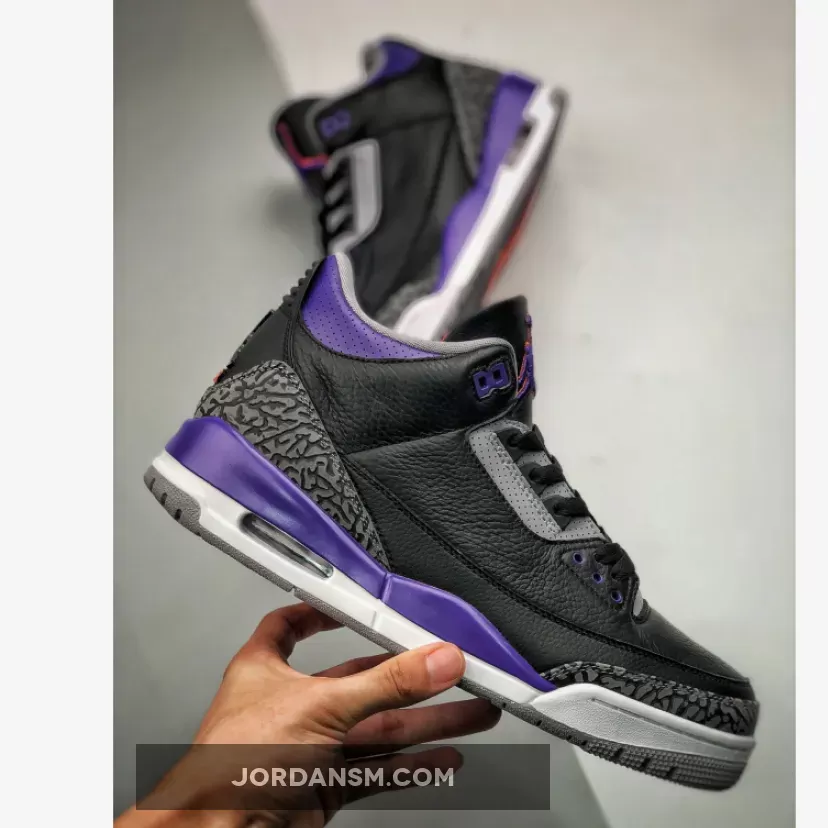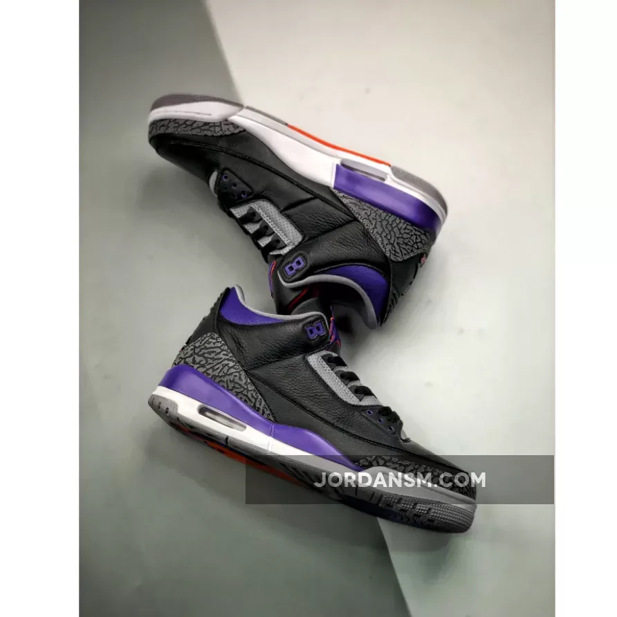 The Jordan 3 Court Purple is the latest Air Jordan that’s just been unveiled for release by Jordan Brand. Following on from famous colorways such as Black Cement, Cement Grey and others, the Tinker Hatfield designed silhouette looks better than ever here, with this Nike Air Jordan set to prove popular with sneakerheads across the globe. The pair are crafted from genuine leather upper and showcase a predominately black leather look with purple accents and Nike’s famous elephant print across the design. The official images we have here give us a great first look at the new Air Jordan, with details including a Jumpman logo at the tongue with an orange outline and Jordan retro branding at the heel. The color blocking used on this release makes for an impressive look, with the court purple accents easily the star of the show.UPDATE: The Jordan 3 Court Purple is officially scheduled to release on 21 November with a retail price of 165.