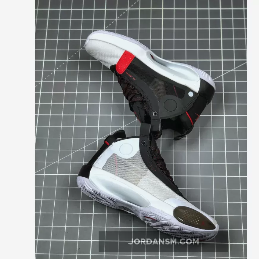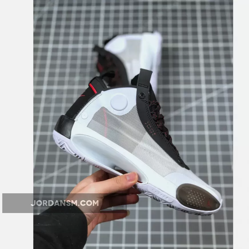 One of those is this upcoming offering that sports the popular “Bred” color blocking. This Air Jordan XXXIV features a White and Black upper paired with Red contrasting accents including “Nike Air” branded on the heels.