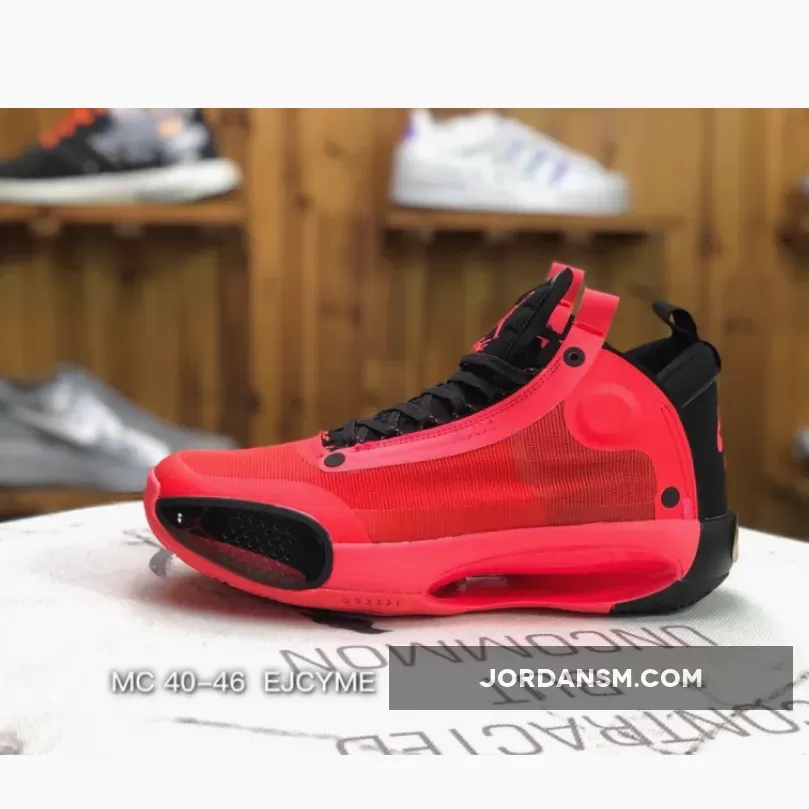 This Air Jordan 34 comes dressed in an Infrared 23 and Black color combination. Highlighted with Infrared across the upper, Black lands on the laces, tongue, liner and forefoot stabilizer. Other highlights includes an Infrared Jumpman and Flight on the tongue while Nike Air branding lands on the heel.