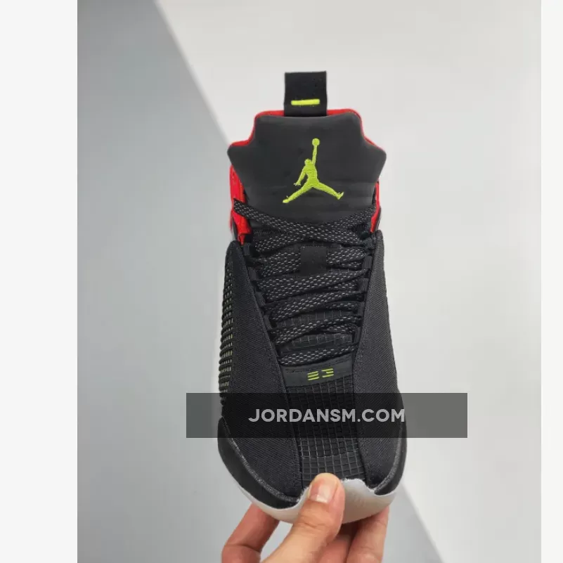 The Air Jordan 35 ‘CNY’ sneakers are sleek and stylish. The wear-away upper reveals a firecracker packaging design, which is a cool feature. The Chinese characters throughout the shoe add a touch of cultural authenticity, while the translucent sole completes the modern look. Overall, a well-designed and eye-catching sneaker for fans of the Lunar New Year celebrations.