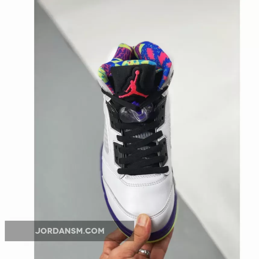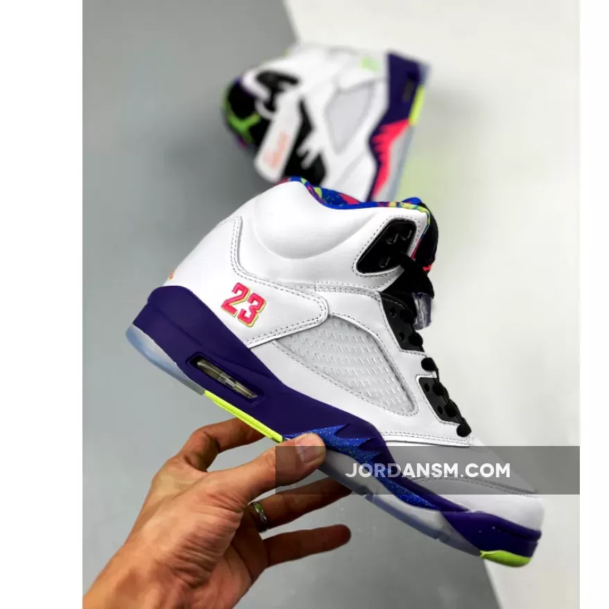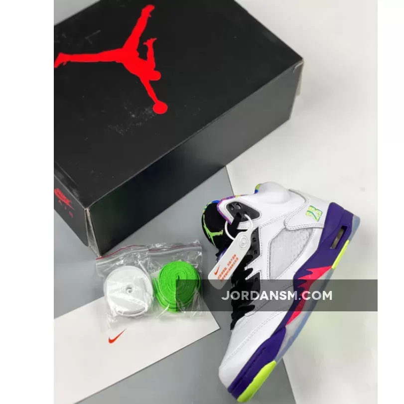 The Jordan 5 Alternate Bel-Air Ghost Green pays homage to the classic 1990s TV series The Fresh Prince of Bel-Air featuring the legendary Will Smith, who was often pictured on screen in early episodes wearing Air Jordans in loud and vibrant colours. It’s safe to say that the show opened up Jordan Brand to a whole new scene, with fans of the show instantly rushing out to get their hands on the original release. We’ve got a first look and detailed images of the Nike Air Jordan sneakers right here.The Jordan Brand shoes are crafted from a neat blend of white leather and mesh, with cool grey being the base colour containing the vibrant colorway. Accents of blue, purple and yellow break up the design, showcasing the similar 90s aesthetic seen throughout the iconic TV show. Air Jordan 5 Retro Alternate Bel-Air Ghost Green features such as the lace locks and mesh panels down each side are present as ever for a retro feel, while Michael Jordan’s signature number 23 is embroidered neatly onto the lateral heel. Visible Nike Air technology is present at the heel, ensuring that these are more than comfortable enough for everyday wear. Get a detailed look of these Fresh Prince inspired sneakers and check the retail price above.