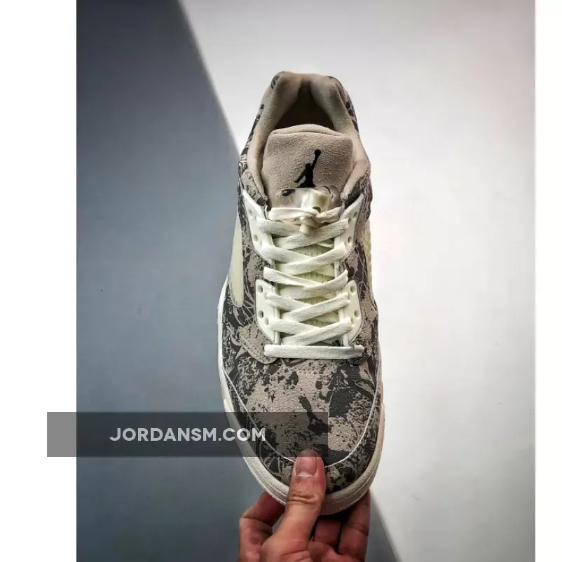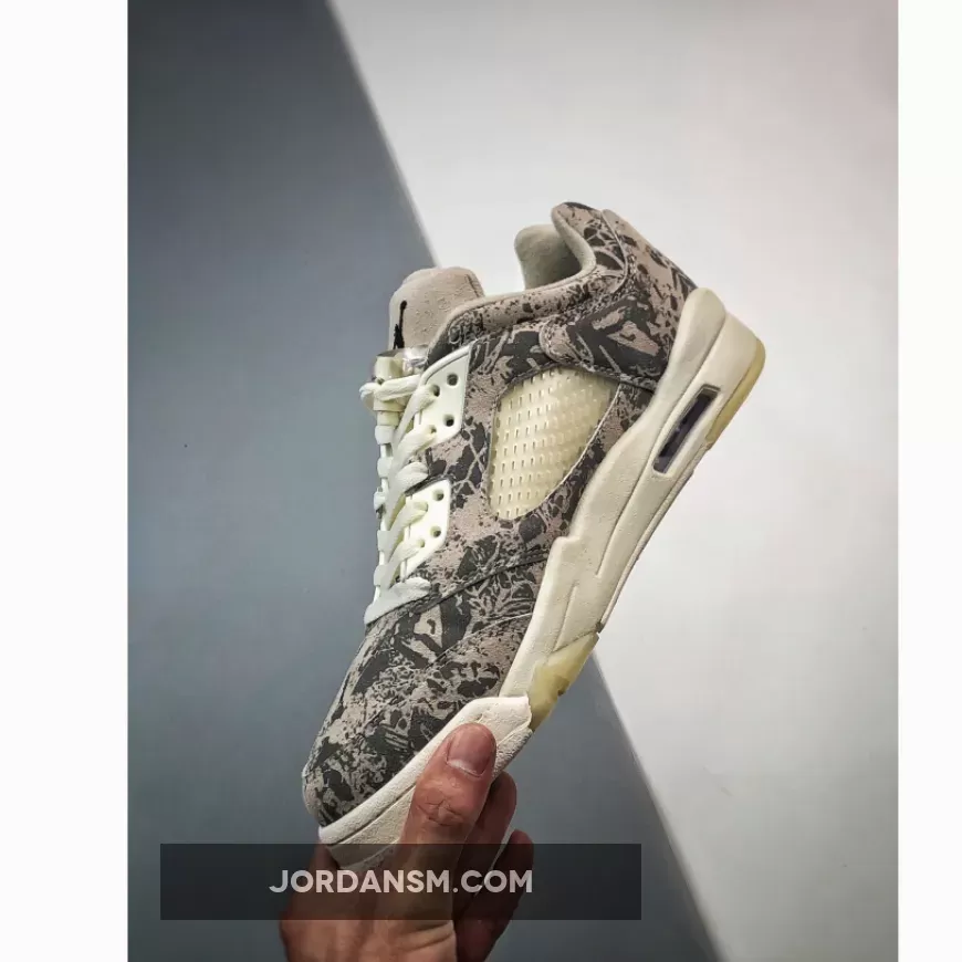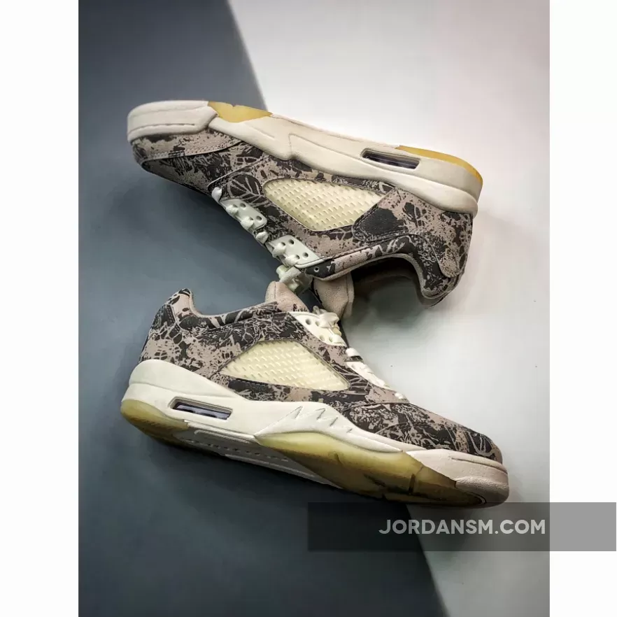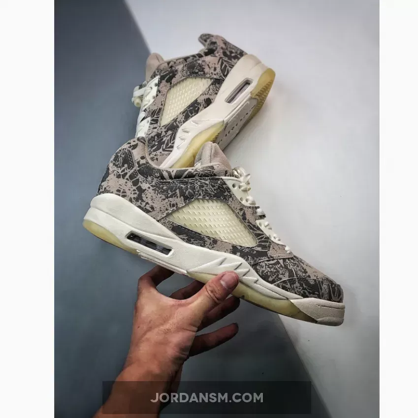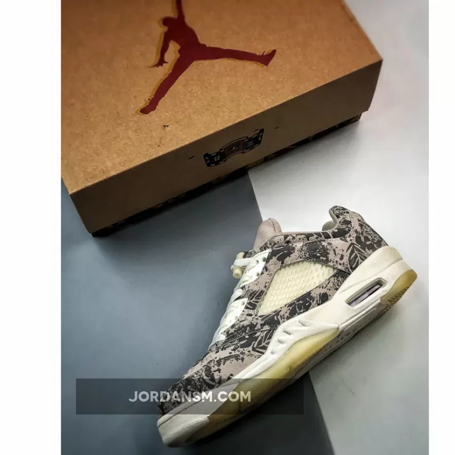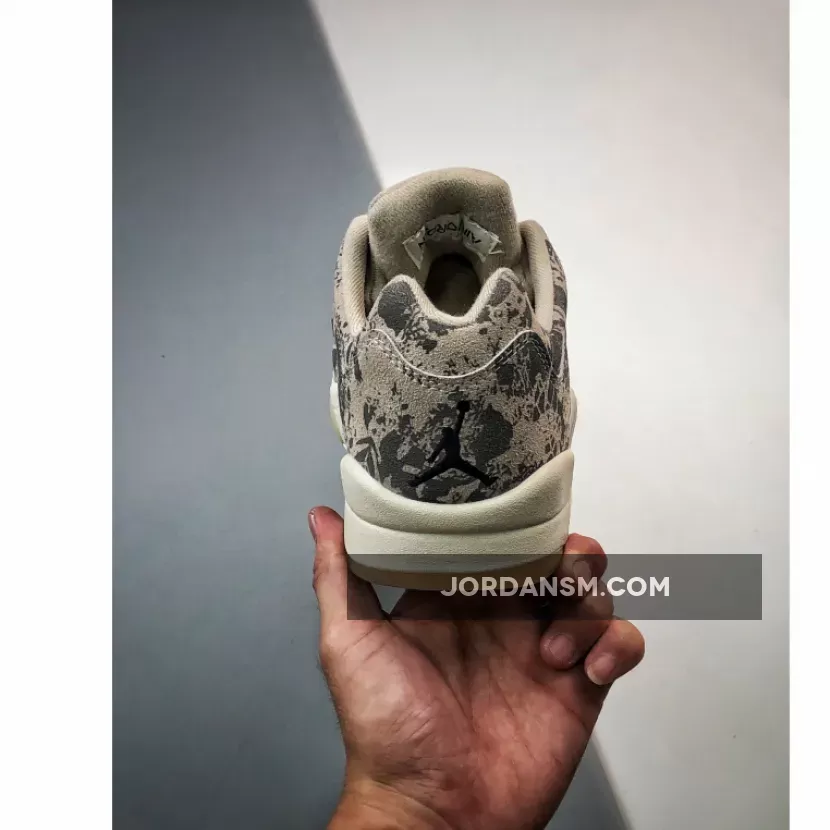 If you’re a Jordan fan, you probably have a couple of Air Jordan 5s in your collection, but if you haven’t maybe the Air Jordan 5 Low “Expression Cream Grey” will convince you. Originally released in 1990, the high-top version of the Air Jordan 5 was inspired by World War 2 fighter jets, and although only its initial run only saw four colourways, it’s become a staple Jordan silhouette ever since. As with most Jordan releases, a number of new colourways and mash-ups followed, before a low-top version also debuted later down the line. This AJ5 Low “Expression Cream Grey” sees the low-top model come smothered in suede, as opposed to the smooth leathers that made up the original pairs. Neutral hues of cream and brown form an all-over camo-like pattern, whilst cream accents decorate the lacing unit and mesh side panels. Jordan branding appears on the tongue and insoles and takes on a rich, chocolate brown shade.