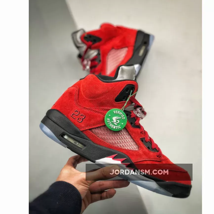 There is certainly nothing wrong with adding another pair of Jordans to your collection, so keep reading on as we reveal the hottest details of the Jordan 5 Raging Bull Varsity Red. Official images of the brand new AJ5 have been sent to us by the Jordan Brand and Nike for a closer look. Michael Jordan’s fifth signature basketball shoe is undeniably one of the most fan-favoured sneakers released. Designed by Tinker Hatfield back in 1990, its design takes heavy inspiration from WWII fighter jets to represent Michael Jordan’s biting style on the court. The Raging Bull Air Jordan 5 first released in 2009 and was one of the most legendary Jordan colourways. The good news is that it’s now returning this year and we just can’t wait to get our hands on a pair.Dressed in Varsity Red overlays from heel to toe, super smooth suede fabric coats the panels for a luxury sneaker aesthetic. Elsewhere, a translucent netting is as present ever midfoot complemented with MJ’s signature jersey number “23” completes the legendary design.The Nike Air Jordan 5 Retro Raging Bull should not be missed if you’re a die-hard Jordan fan.