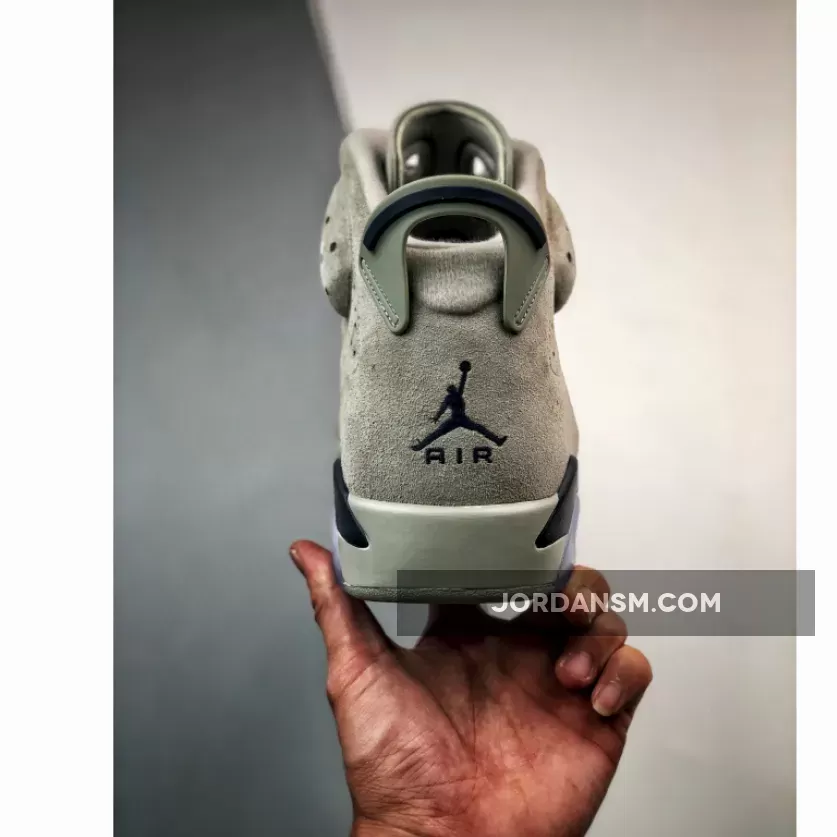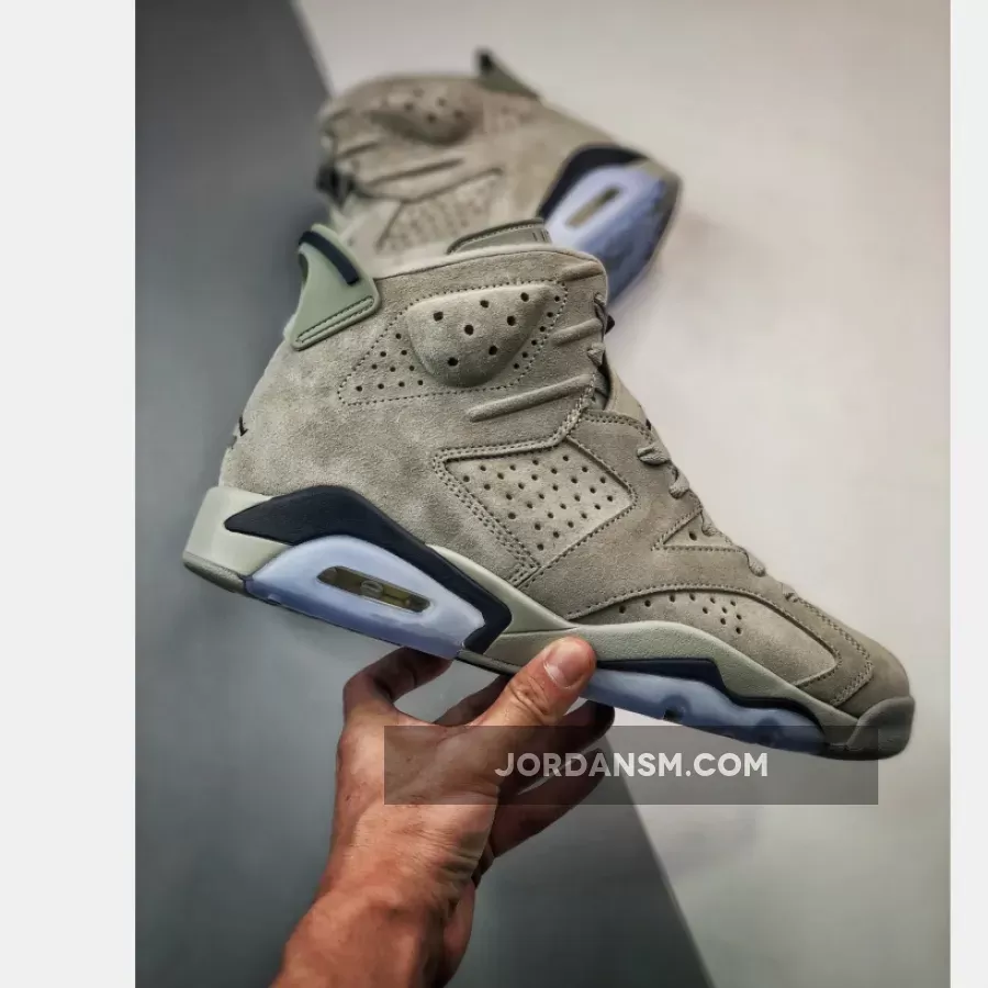 Sleek elements take the vanguard in the Air Jordan 6 Georgetown. This understated pair’s colourway takes cues from the palette of Patrick Ewing-led Georgetown Hoyas. Grey takes the centre stage as it dominates the perforated suede upper and the matching laces and tongue, while navy blue appears sparingly in the lace lock, heel tab, and midsole. A true versatile shoe, this design will match well with many looks no matter the season.