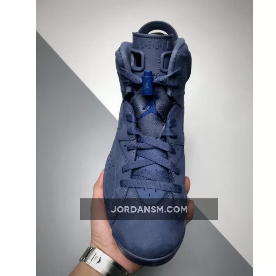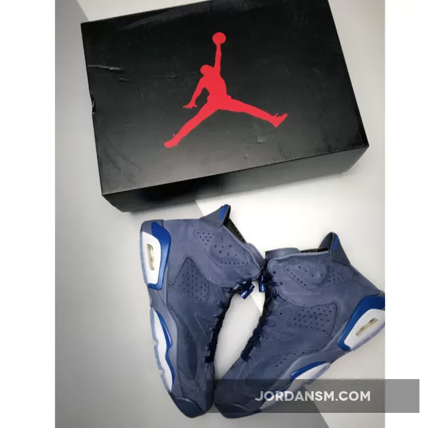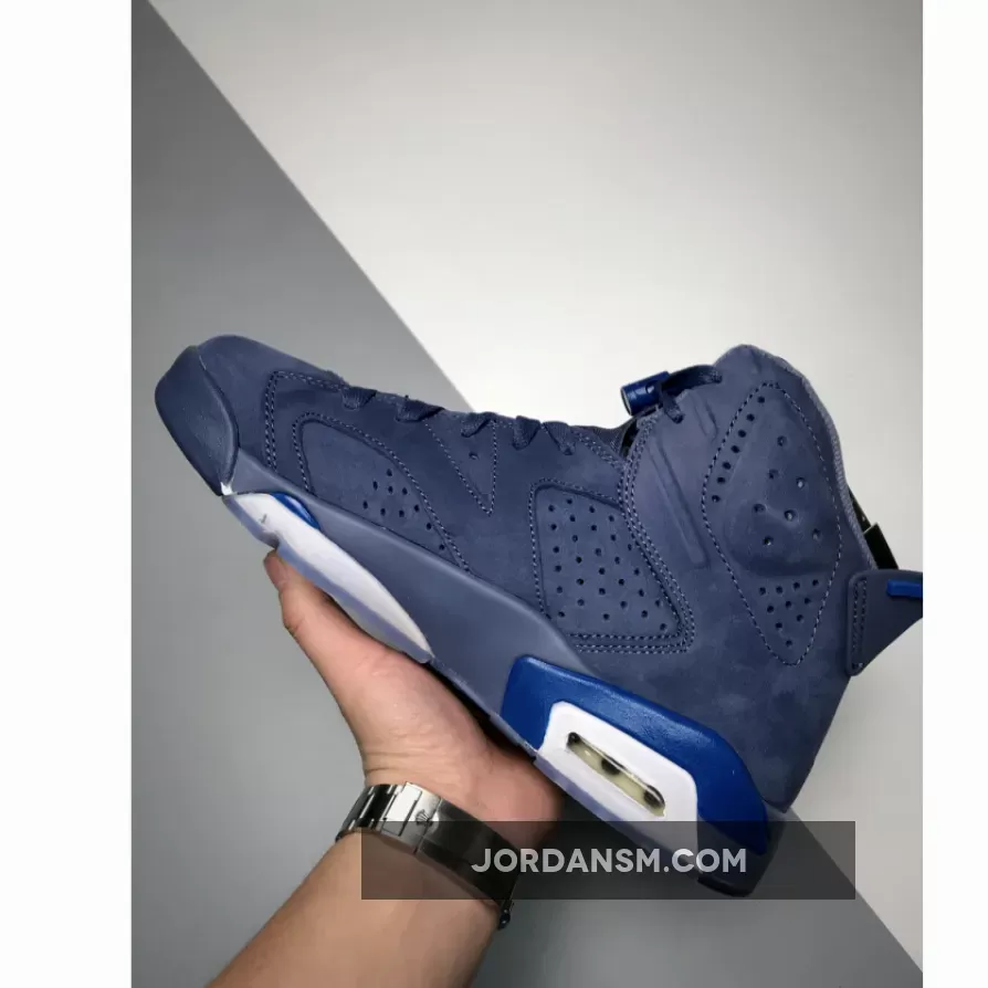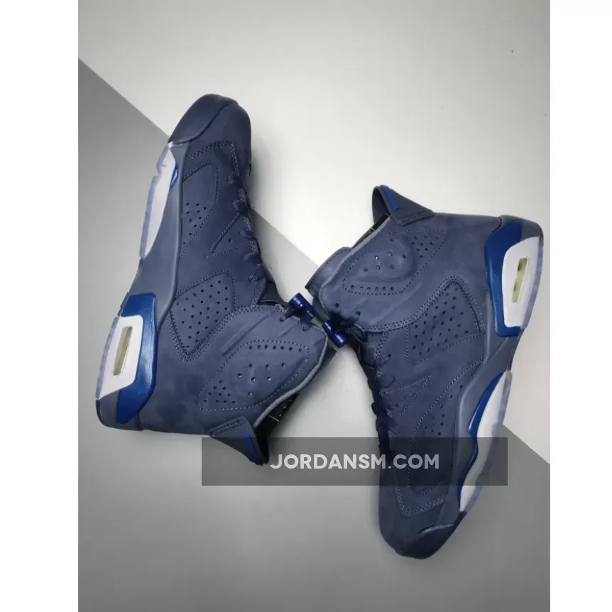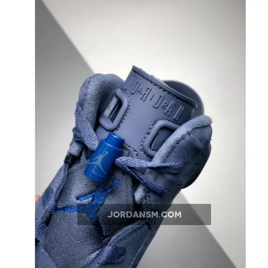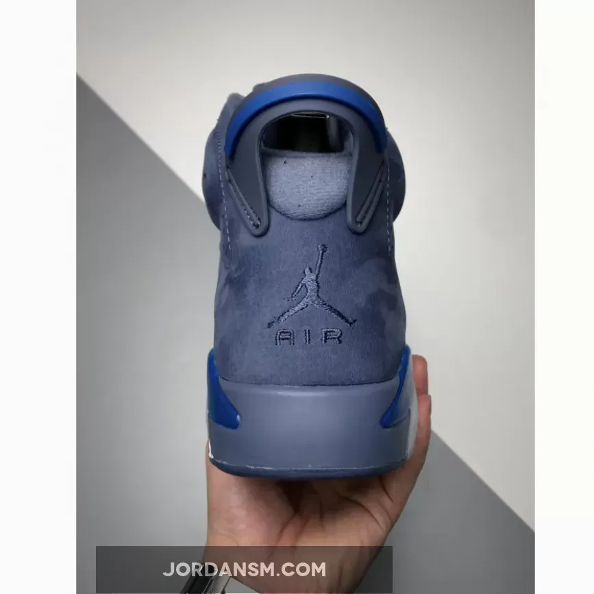 Originally rumoured to be Jimmy Butler’s signature shoe, the upper of the Jordan 6 Diffused Blue is constructed almost entirely of slate grey suede and leather, while accents arrive via bold royal blue hits on the midsole, heel tab, and throat’s neoprene cover.