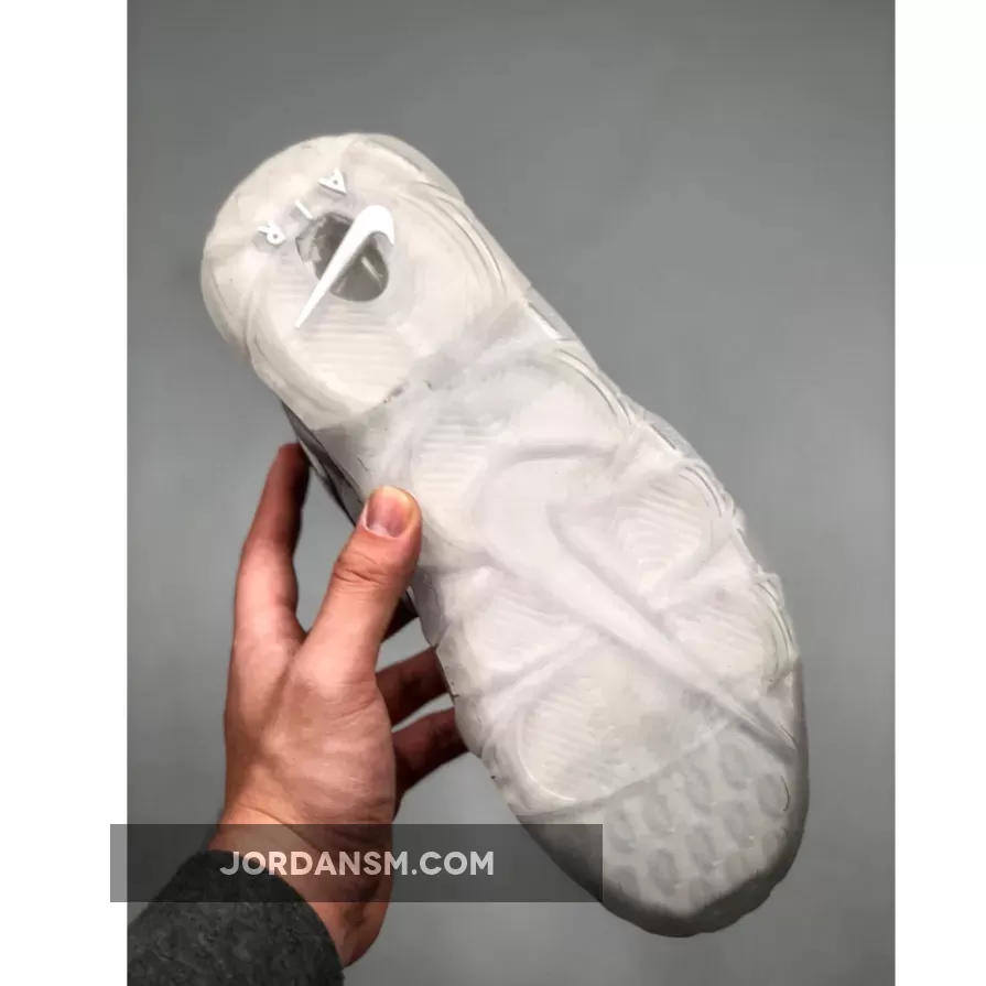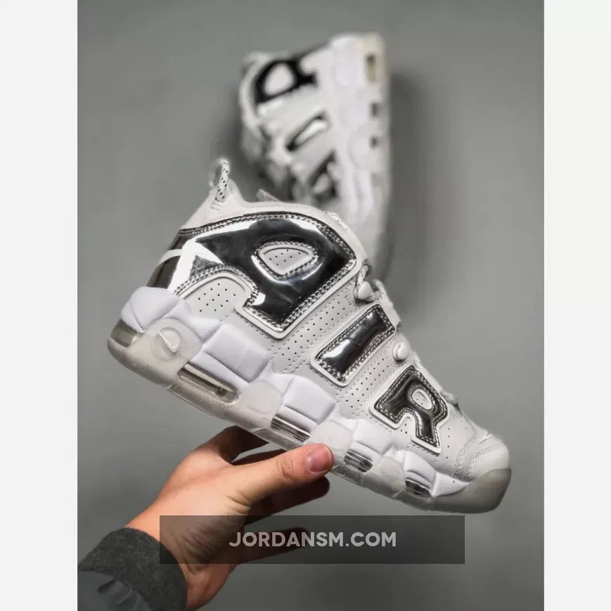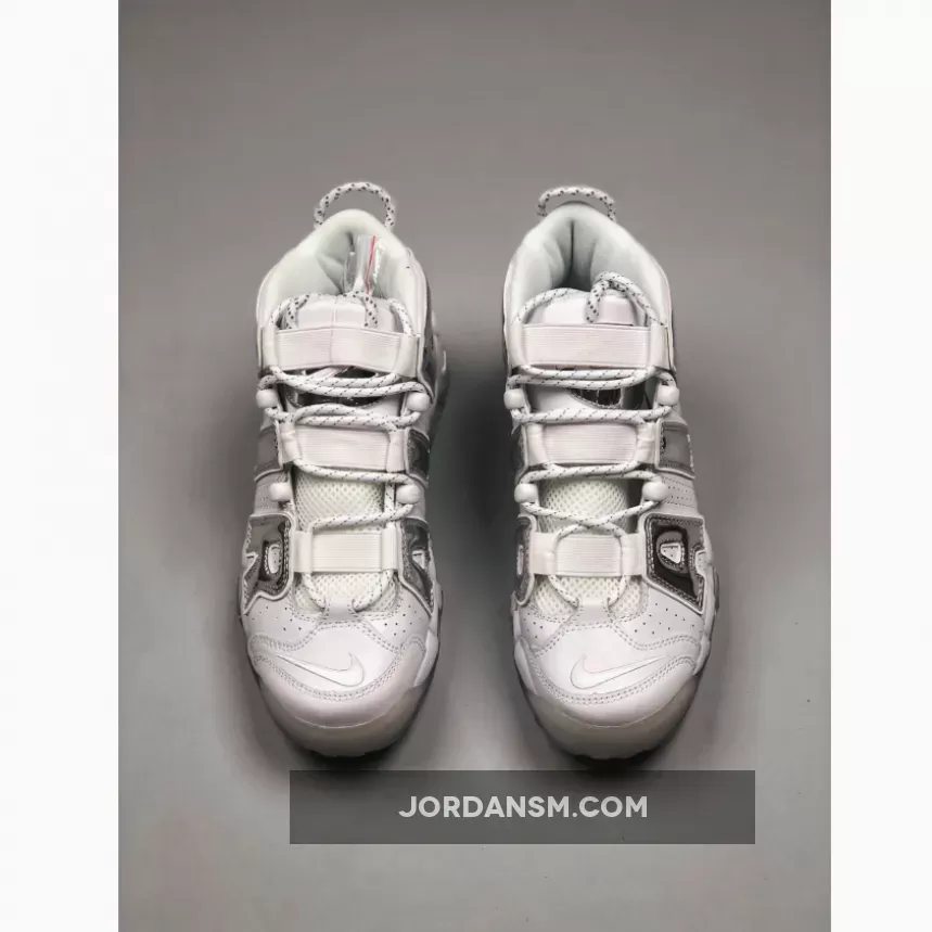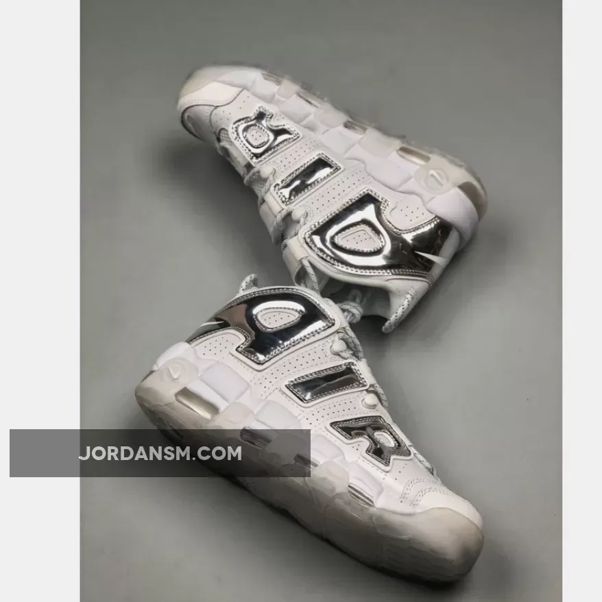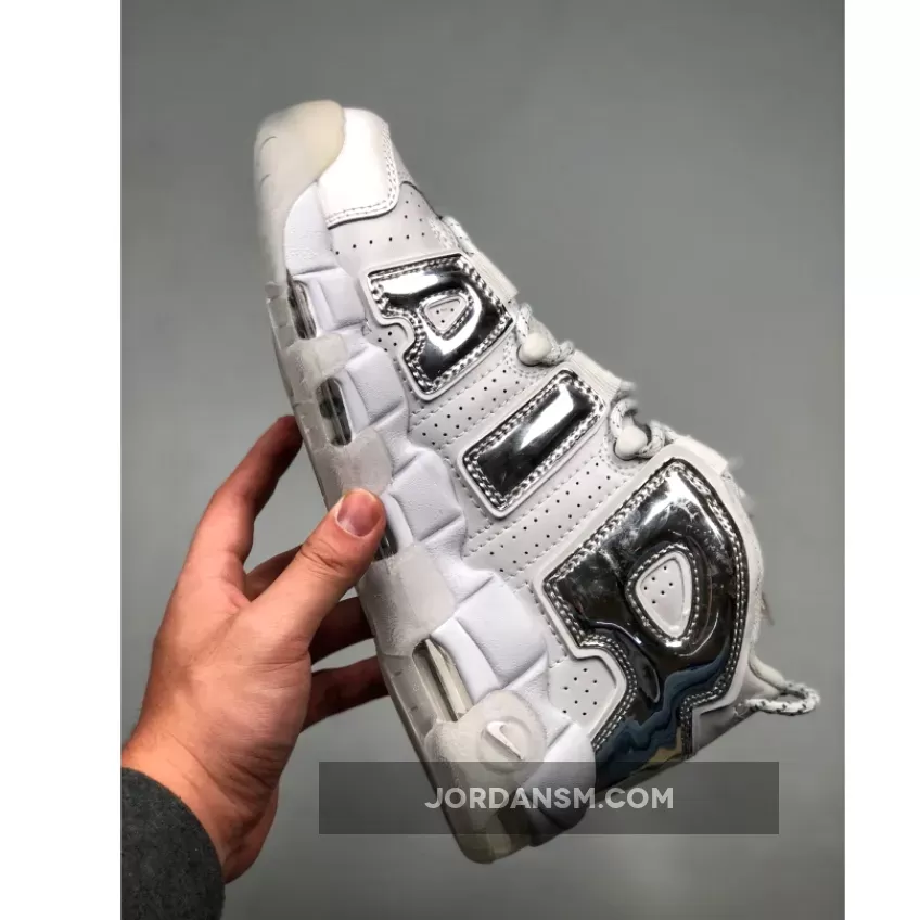 This Nike Air More Uptempo is basically made of white perforated leather for its upper while the highlighted design consist of chrome colored oversized “AIR” branding on the side panels. 3M reflective outlining, a white midsole with visible air cushioning, metallic silver lace tips and an icy translucent outsole completes the design altogether.