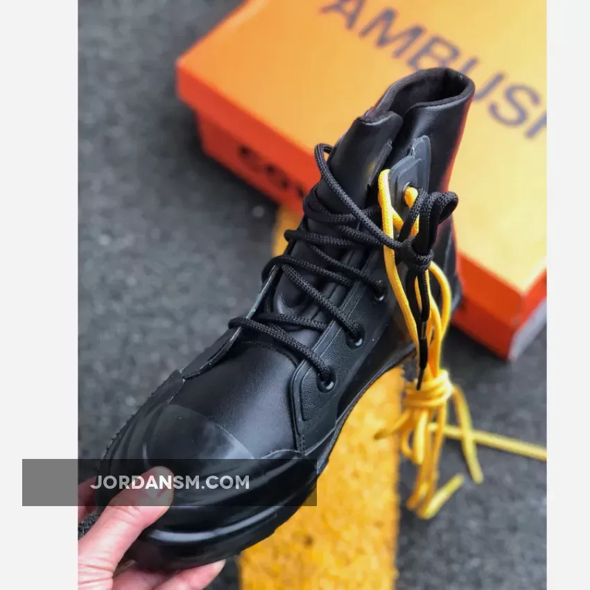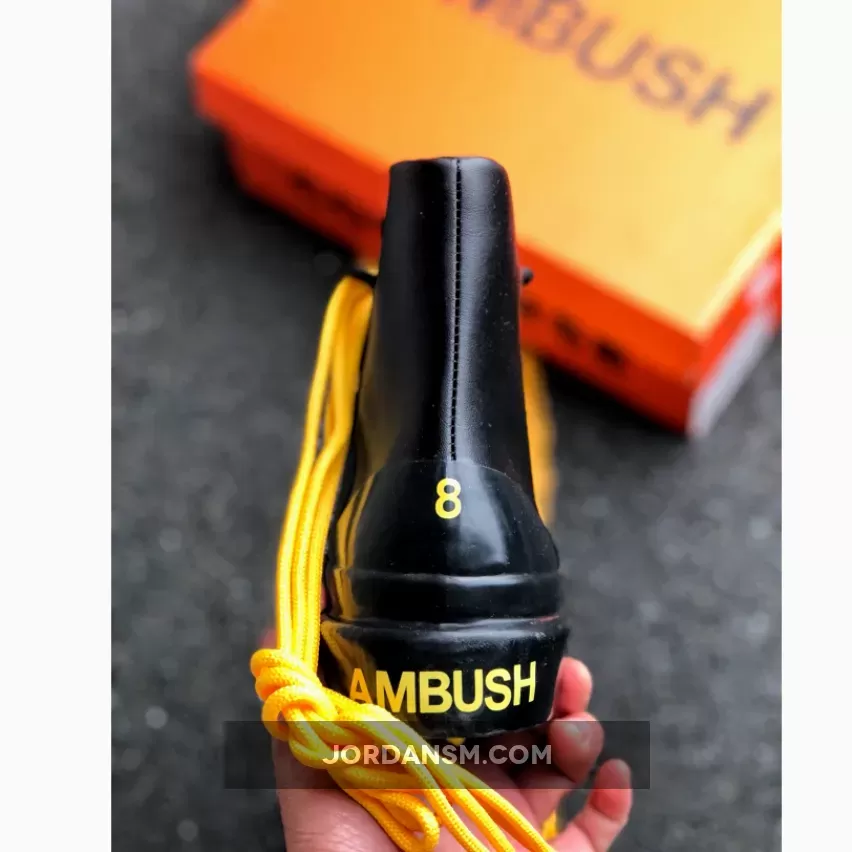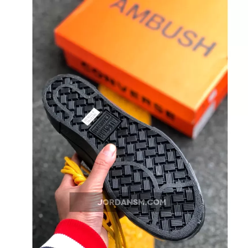 A reimagining of two staples, the Chuck 70, dressed entirely in white tones, is largely the most imposing while the sleeker (though not by much) Pro Leather quiets down in its blacked out color scheme. Marking the first reworking of the model at the hands of any designer, the latter silhouette sees to rubberized soles, the classic Chevron logo, and gusseted tongues. The Chuck 70, however, is in closer homage with soles heightened by more than double and markings at the eye stay denoting how to wear. “AMBUSH” prints on both at their heel — in contrasting type of black or yellow — with the size also emblazoned in bold face just above.