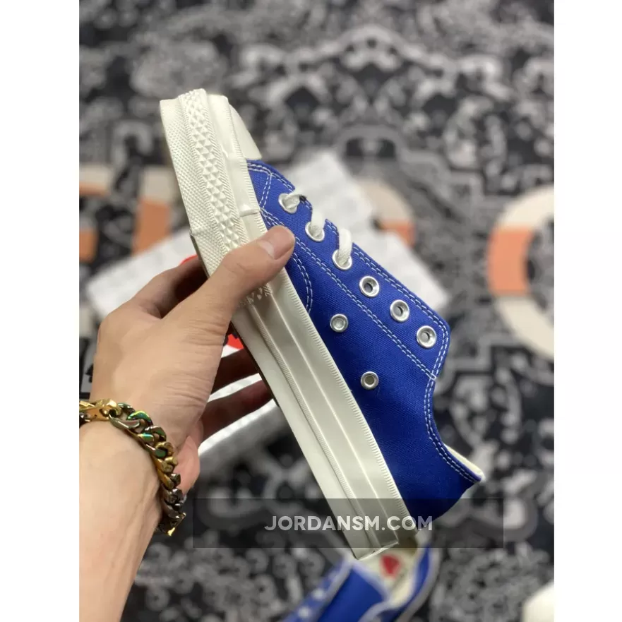 Solid CDG Play x Converse Chuck 70 Low Blue! Premium canvas with a denim vibe. Love the chunky midsole and classic silhouette. Perfect summer shoes – comfy & stylish. Quality feels top-notch. Highly recommend!