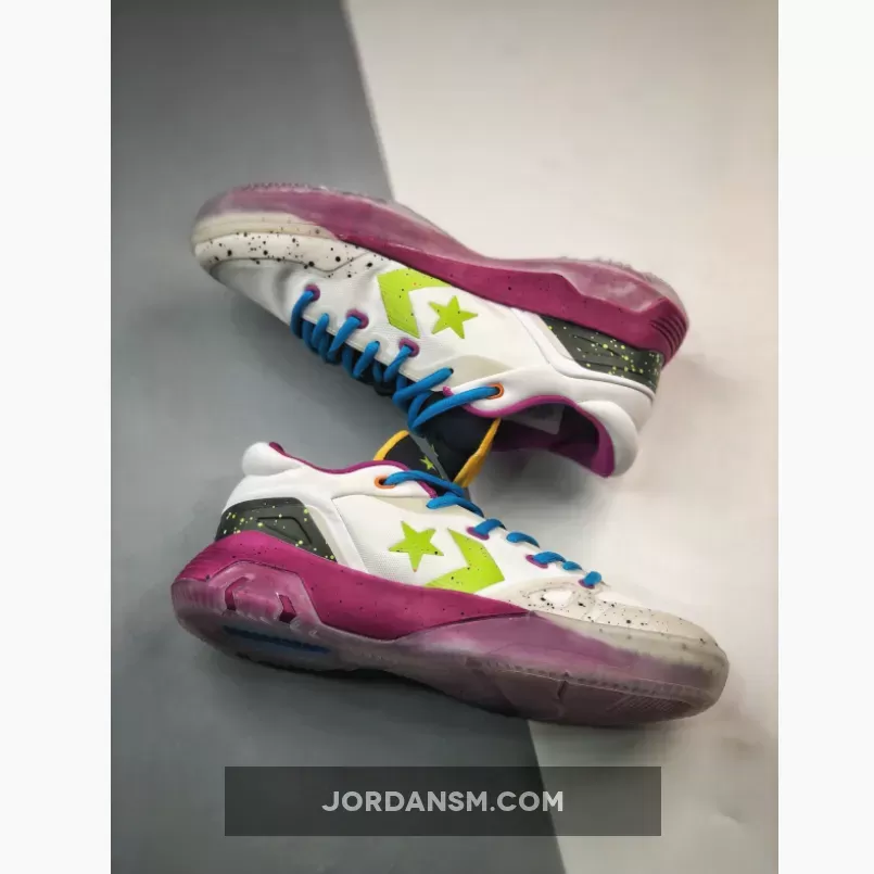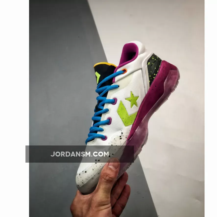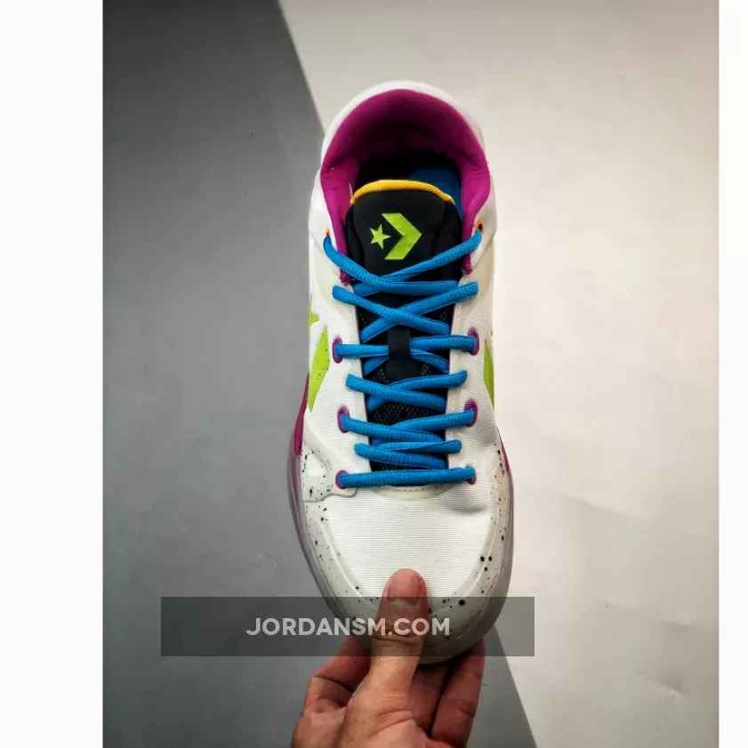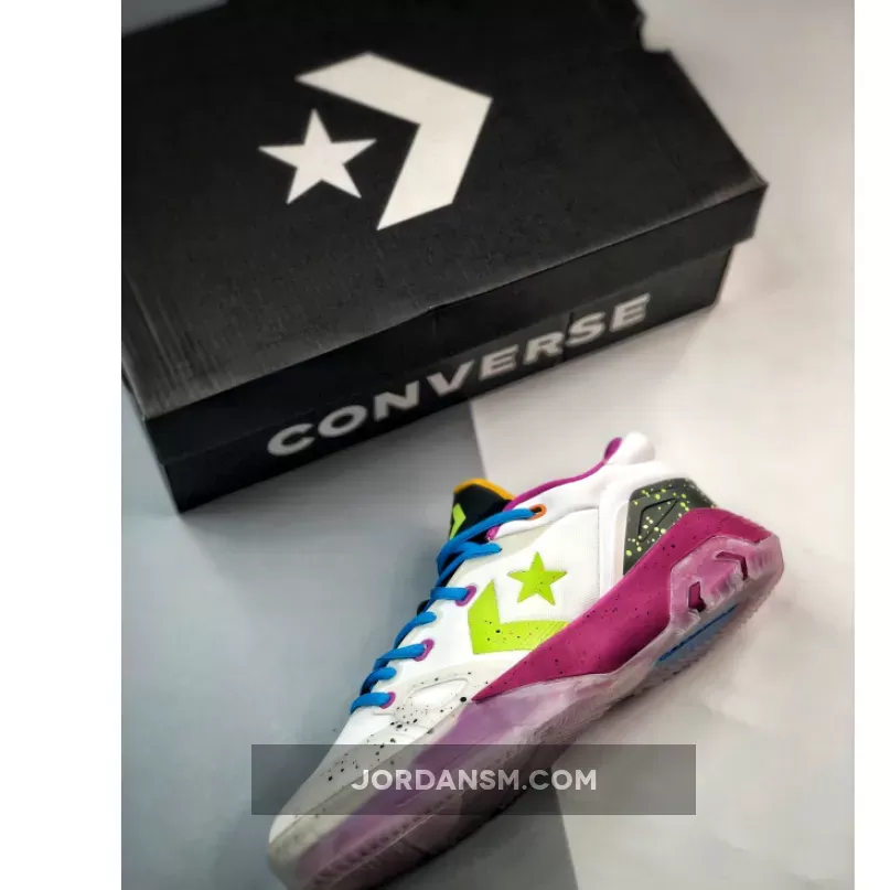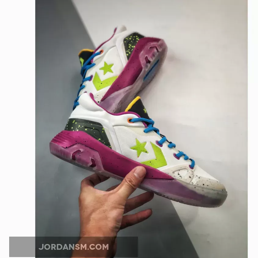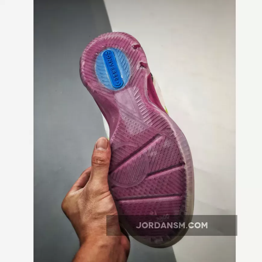 Featuring two models, the collection is headlined by the all-conquering All Star BB Evo. The React-infused baller has been given a wild makeover, with a black and white base contrasted with eye-searing accents. A pink punch is delivered via the laces, as yellow branding highlights the lateral side. Look a little lower, and you’ll notice graffiti-style paint speckles across the mudguard and heel.