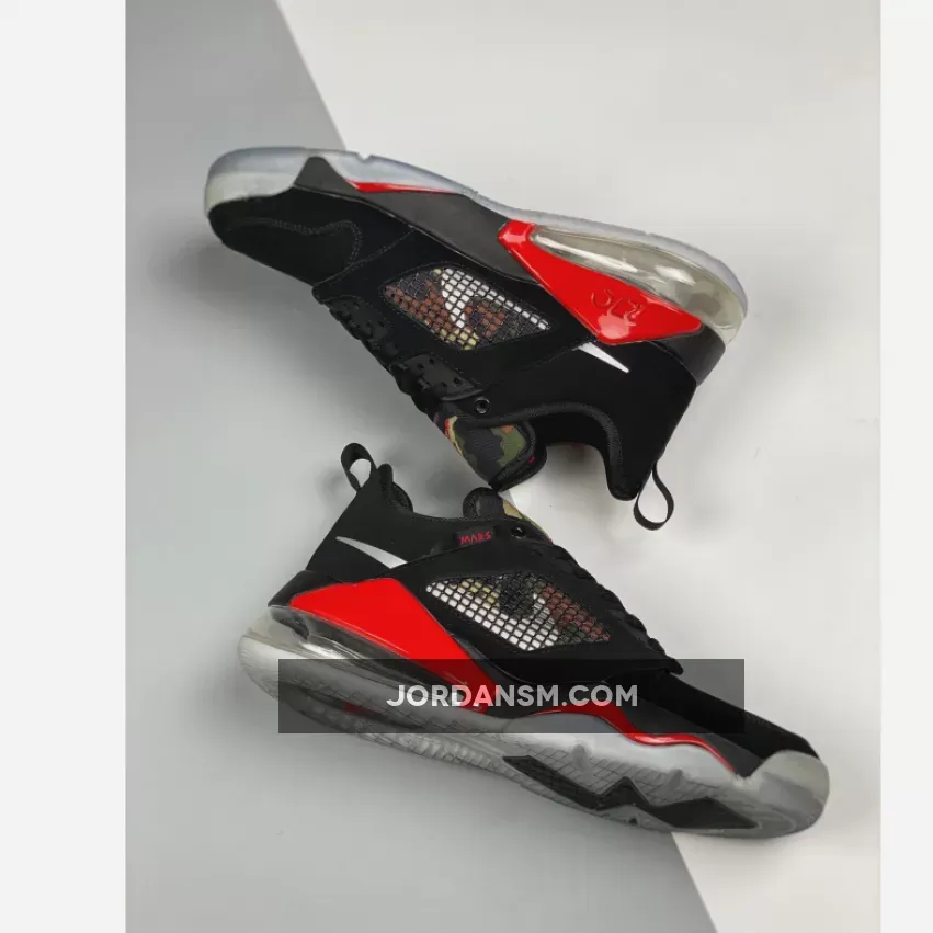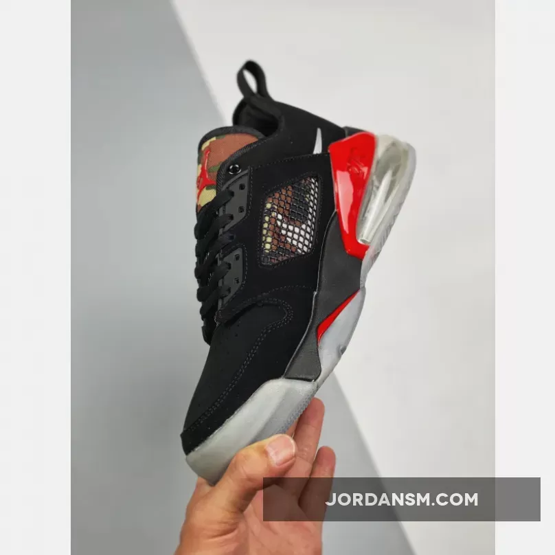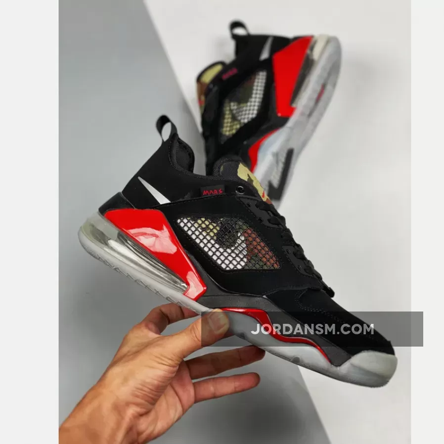 This low-cut edition of the Jordan Mars 270 features a Black nubuck upper paired with Metallic Silver Swooshes on the sides and University Red accents along the midsole, Jumpman logo on the tongues, and “Mars” tag on the medial side. Highlighting the shoe is its camouflage print on the tongues and sides underneath both the netting and Swooshes.