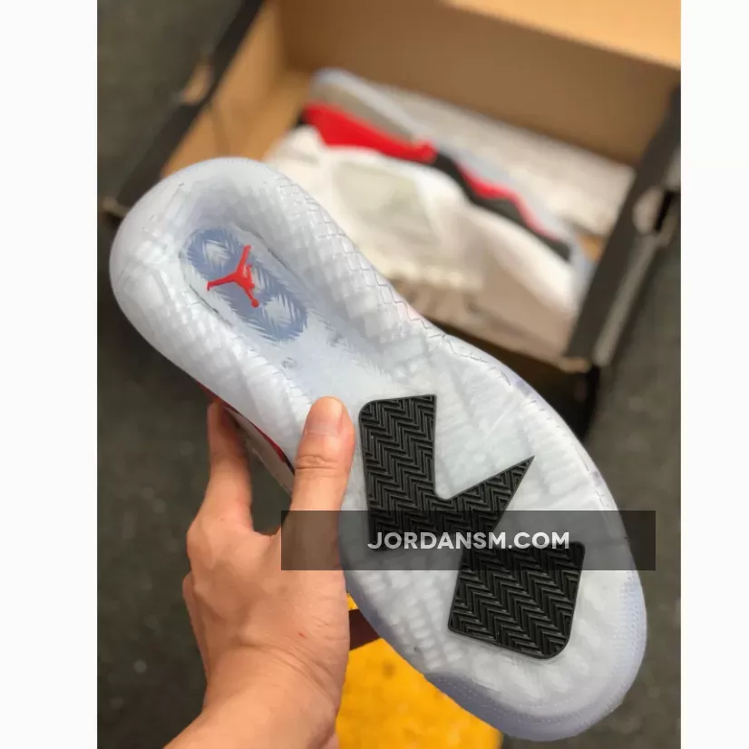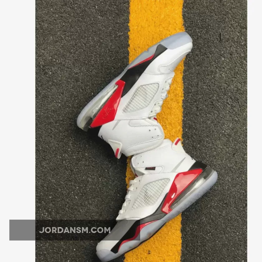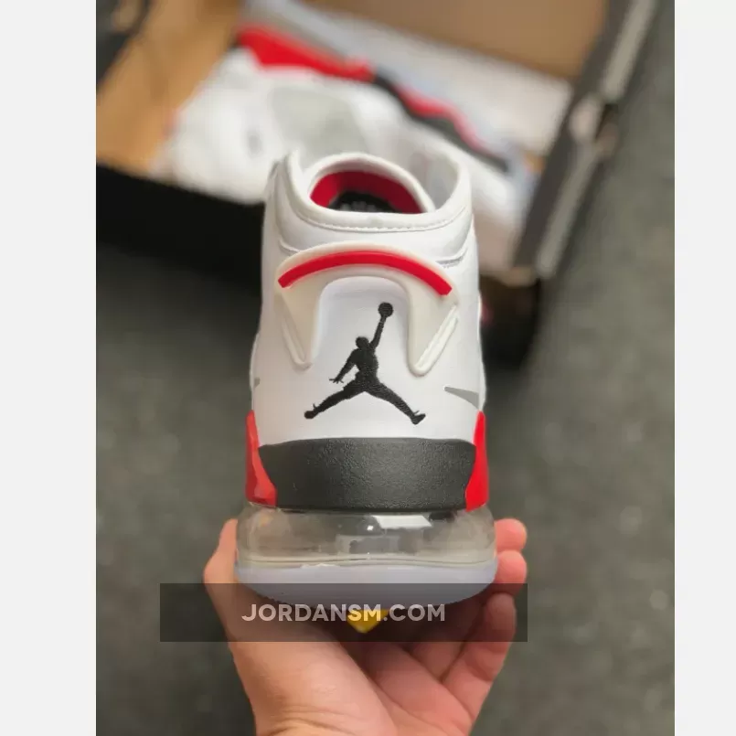 Paying homage to classic Air Jordan colorways, one of those will include an upcoming “Fire Red” iteration. This release features a White leather upper with a Silver Swoosh underneath the mesh netting on the sides. Black detailing, Fire Red accents atop an Air Max 270 heel unit and translucent outsole completes the design.