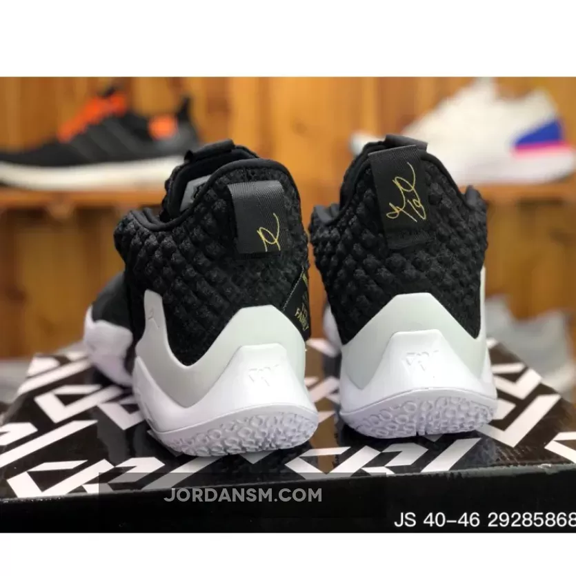 Dressed in a clean Black and White color scheme. The basketball silhouette features an all-Black upper sitting atop a clean White rubber sole. Highlighting the release are Gold accents on the branded areas as well as the back heel label that reads “The Family.”
