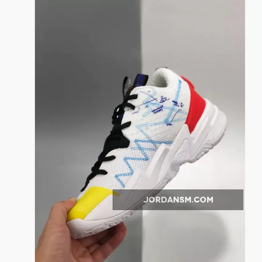 The raw, blueprint-like writing on the shoe draws from the Red lining made by footwear designers during the pattern trial process. Each color represents a professional team that Westbrook has played for.