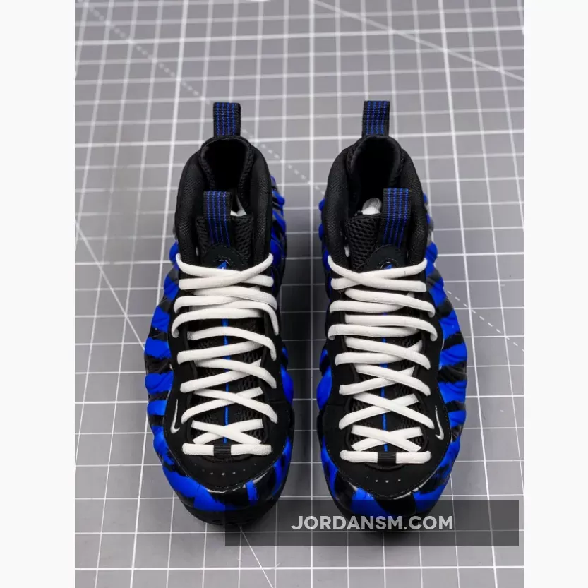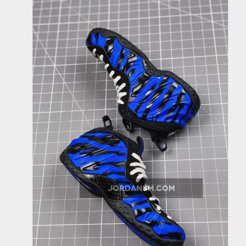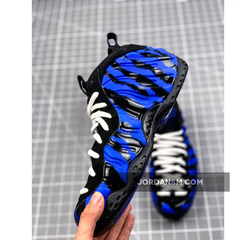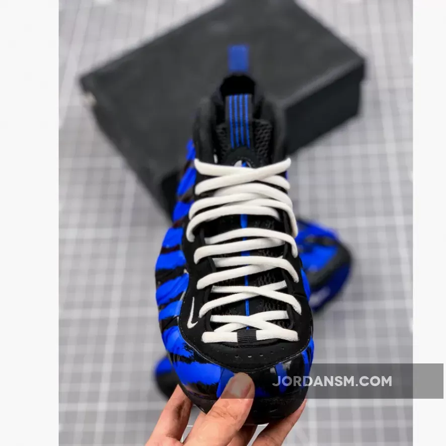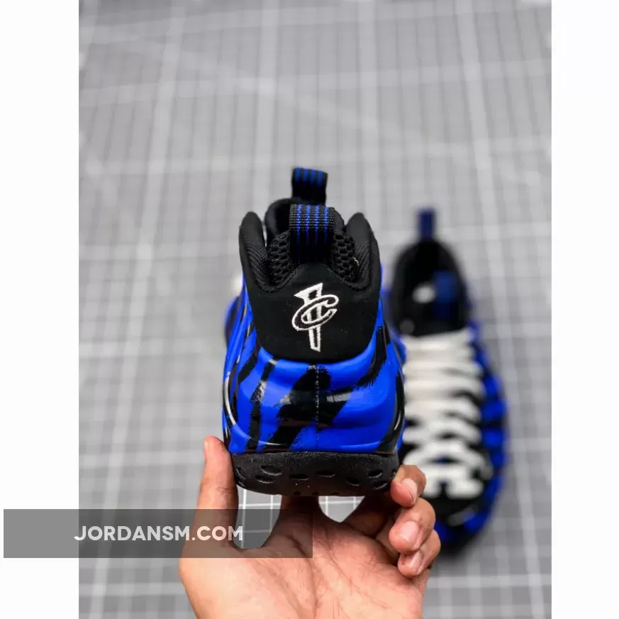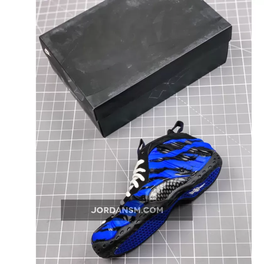 The shoe features a Blue Foamposite upper with Black tiger stripes throughout. White laces, Black rubber outsole, housed in a custom wooden box with engraving of Penny’s personal motto, “Ballin’ Is What I Was Born To Do.”