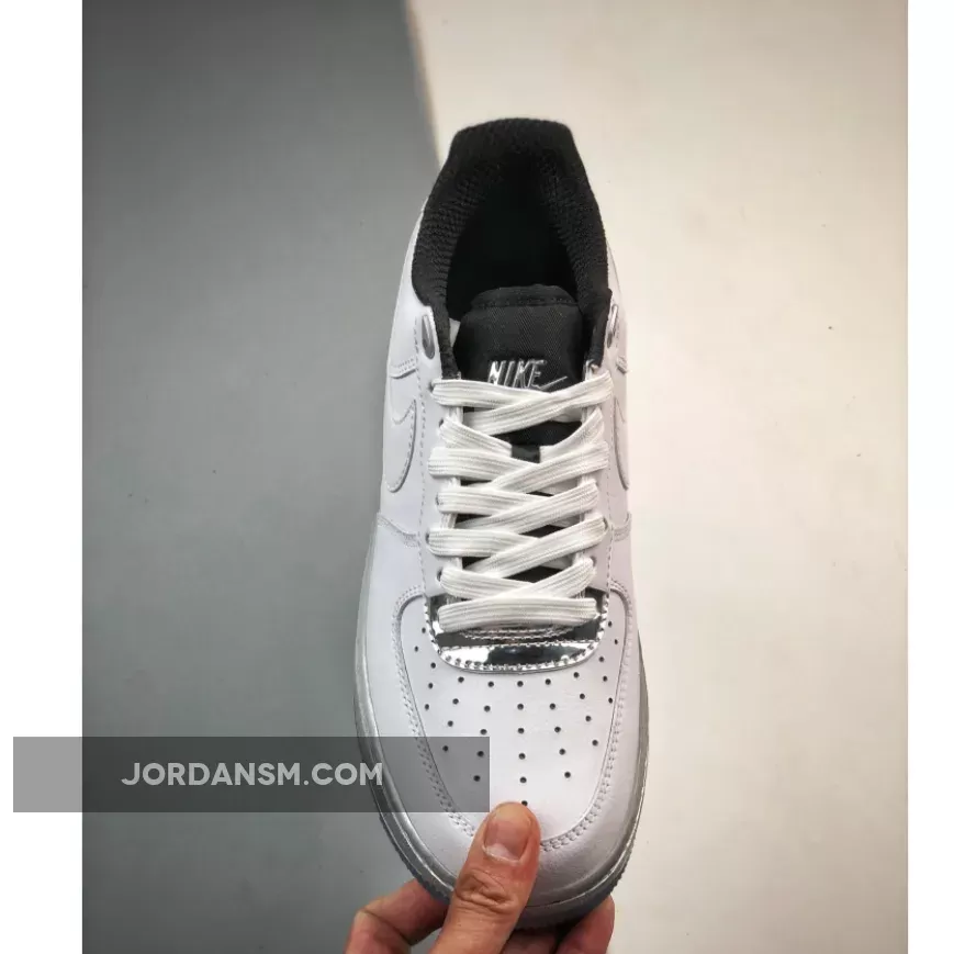Dressed in a White, Metallic Silver and Black color scheme. This offering of the Nike Air Force 1 Low features an all-White leather upper with Black mesh tongues and lining. Other details includes Chrome vamp overlays, “Nike Air” branding on the tongues and heels. A Metallic Silver midsole atop an icy translucent outsole completes the design.