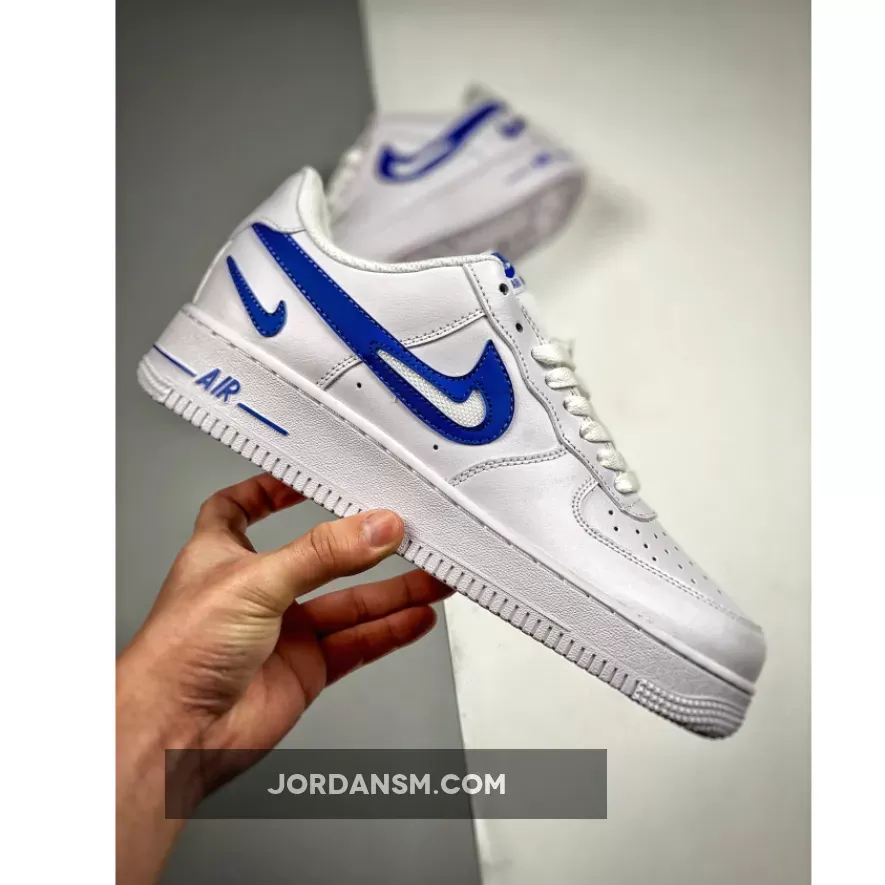 Retro, revisited. Introducing the Nike Air Force 1 Low Cut-Out White Game Royal. A modern take on the classic basketball-turned-lifestyle silhouette, this Nike Air Force 1 Low boasts a fresh eye-catching variation on the iconic Swooshes. Seen on the lateral side and dressed in “Game Royal” is a Nike logo that sports a cut-out accent — displaying a subtle fabric design. A matching smaller Swoosh is then placed at the lateral heel, giving the shoe a playful look. On the other side, solid medial Swooshes are also outfitted in the same blue hue. Pair this with denim for a streamlined all-blue look.