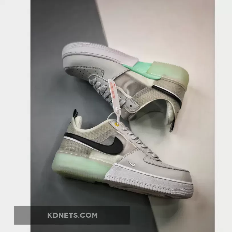 Constructed out of a mix of leather, mesh, and transparent TPU overlays, this Nike Air Force 1 React takes on an official color combination of Photon Dust, White, Mint Foam, and Olive Aura.
