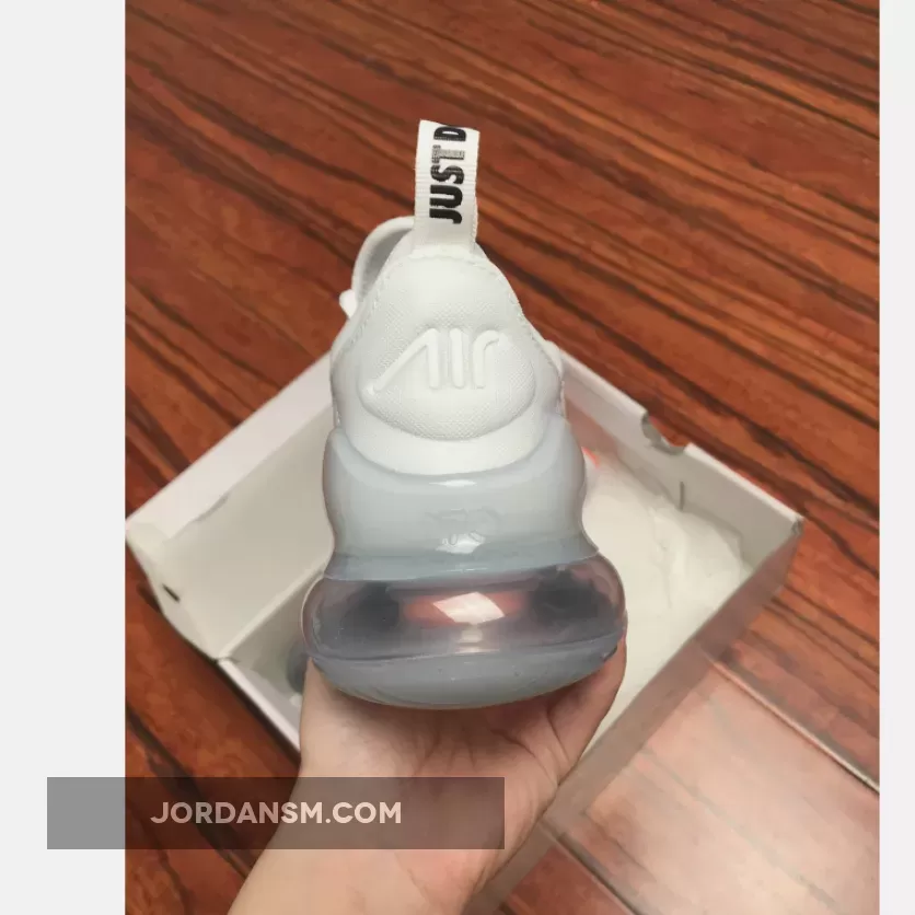 The Air Max 270 ‘Just Do It’ released as part of Nike’s 30-year celebration of its iconic ‘Just Do It’ tagline. The sneaker boasts a breathable white neoprene upper, with black underlays and orange accents on the outsole, tongue and Swoosh branding on the toe box. The low-top also features a bootie construction for a snug fit, a 3-piece midsole for durability, a mono-mesh window in the quarter and a rubber toe tip with ‘AIR’ lettering.
