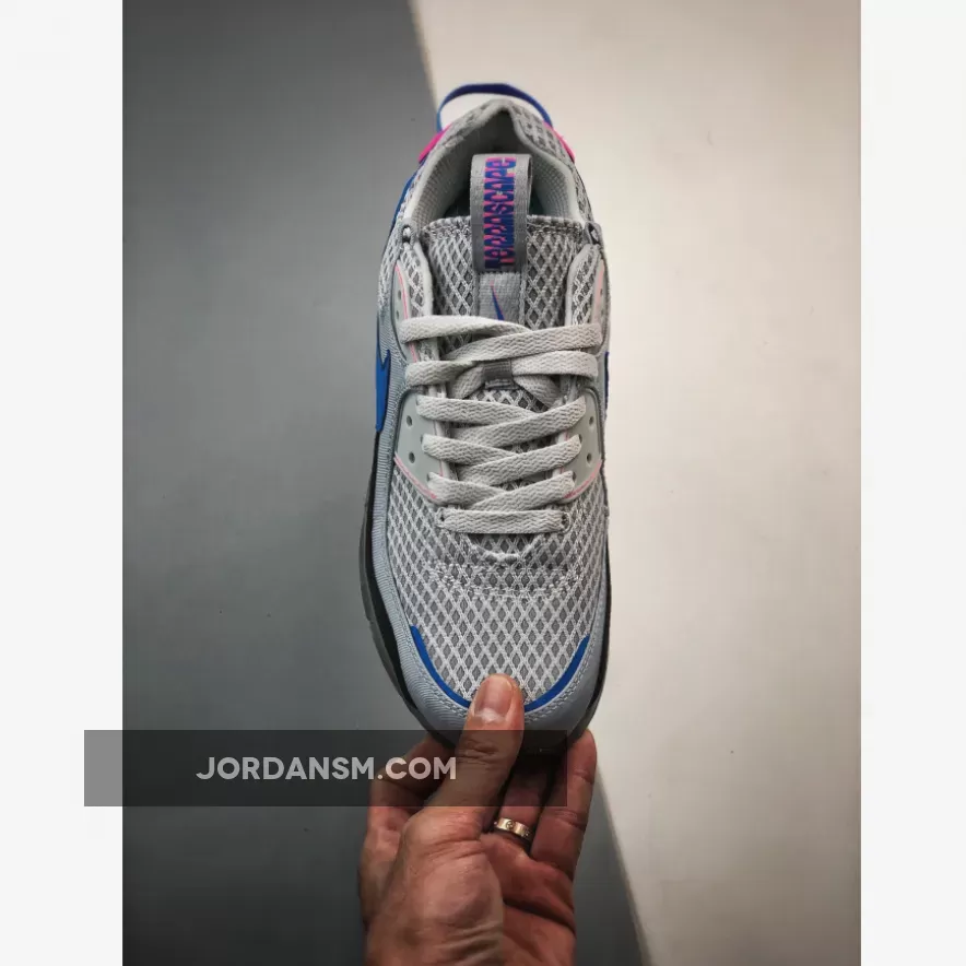 As you can take a look, the upper is mostly light grey. The mesh toe box promises sweat-free wear, and the pop of blue lining at the peak of the toe box adds a unique touch. Additionally, For a burst of color we see the addition of bright blue on the Swooshes on the side panels and bubble gum pink on the heel tabs.