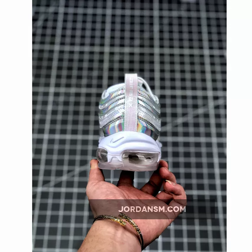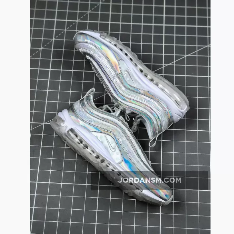 Phenomenal design! The Air Max 97 Premium ‘White Iridescent’ boasts premium quality. The iridescent overlays and spangle shimmer elevate the shoes visually, while the breathable mesh upper and responsive midsole deliver comfort and support. Highly impressed with the clear translucent outsole. A must-have for any sneaker enthusiast!