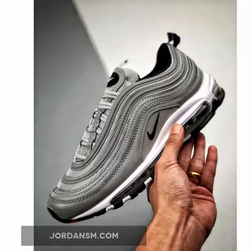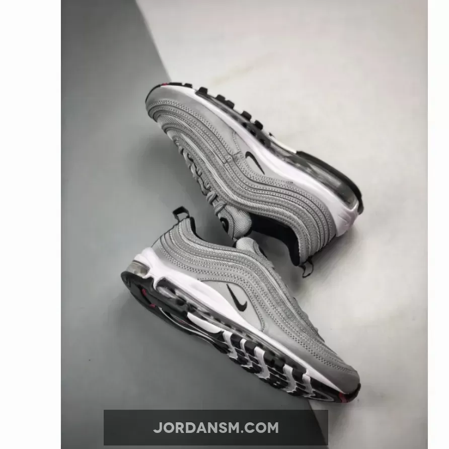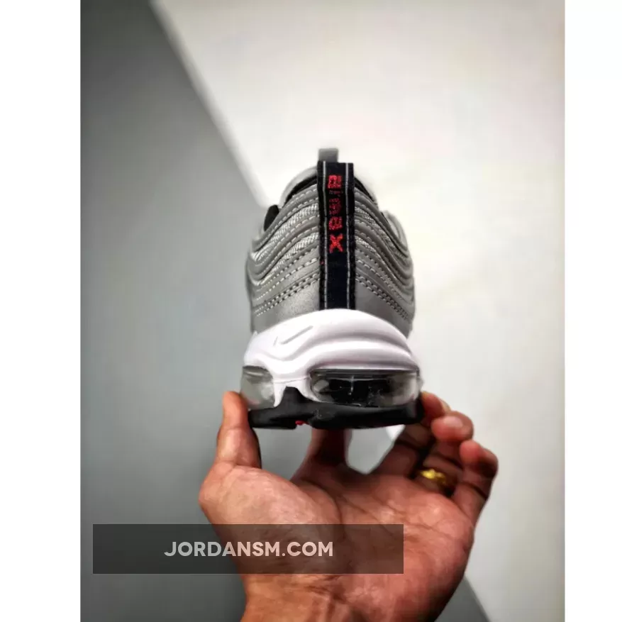 Featuring an all-silver upper similar in style to the much-loved OG ‘Silver Bullet’ 97s, the Reflect Silver replaces the original’s red midfoot and tongue swoosh with a silver swoosh on the midfoot and a black swoosh on the tongue, while retaining the black sockliner, pull tabs, and patches used on the original. Red Air Max branding adorns the heel tab, and the shoe’s sleek look is tied together with a full-length silver Air Max cushioning unit and black outsole.