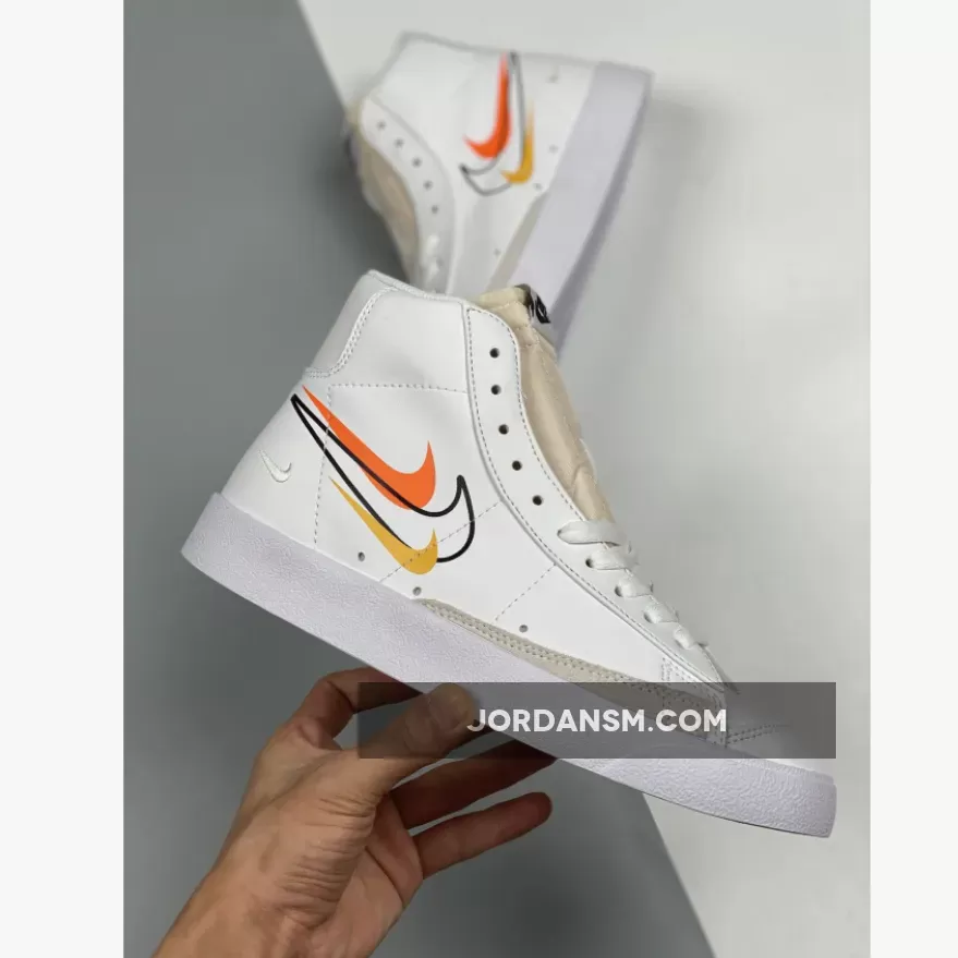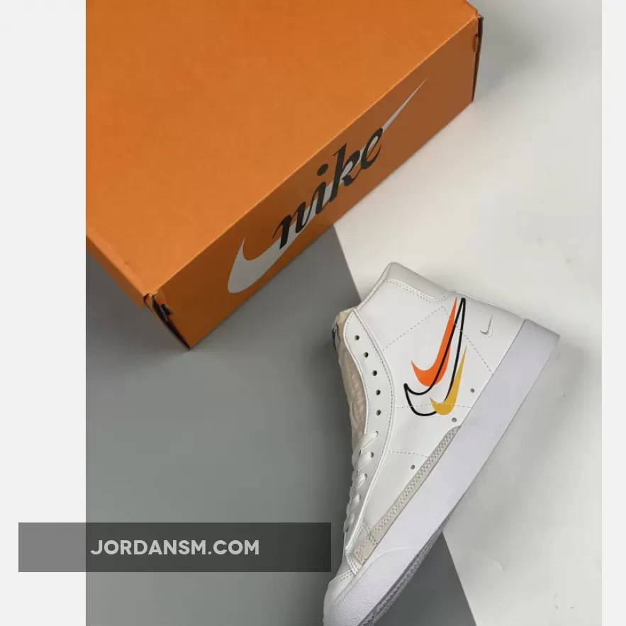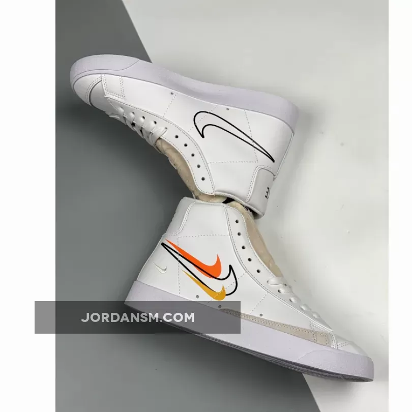 The Nike Blazer Mid 77 Multi Swoosh White Team Orange features a refreshing white design with colorful accents. The premium leather upper and multiple Swoosh logos provide a stylish and durable look. The comfortable fit and excellent traction make it perfect for everyday wear. Overall, a stylish and functional sneaker for fashion-conscious individuals.