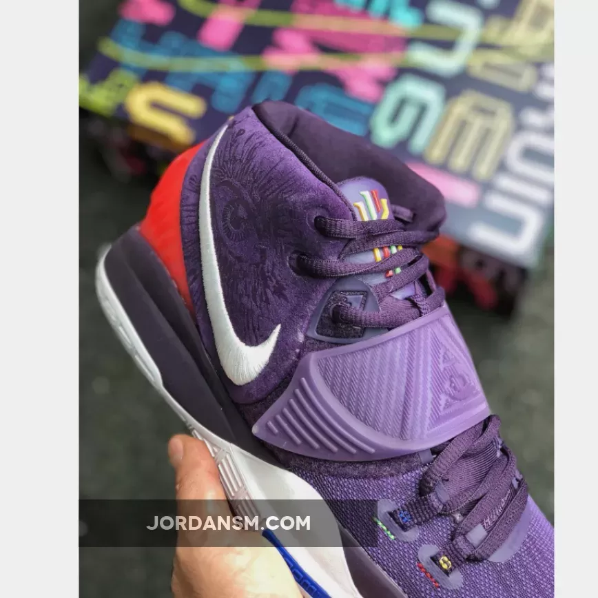 This Kyrie 6 features Deep Purple suede across the upper while Kyrie’s Seeing Eye logo is placed on the collar.