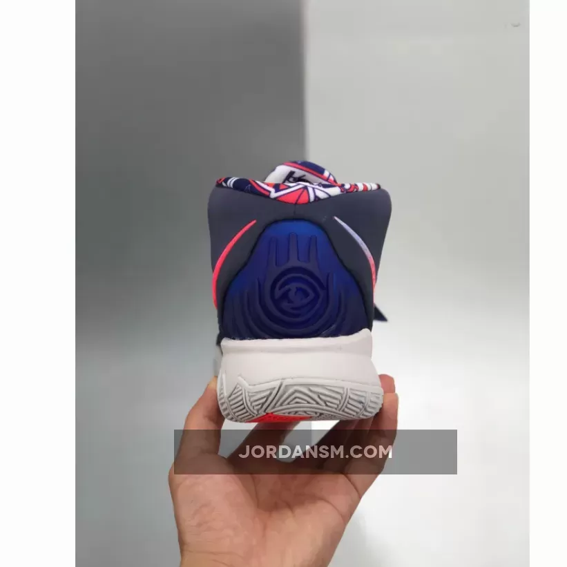 This offering of the Nike Kyrie 6 features a Midnight Navy-based upper with Bright Red accents throughout including a gradient Swoosh on the lateral. Highlighting the shoe is a “Seeing Eye” pattern that covers the tongue and lining completed with a White rubber sole.