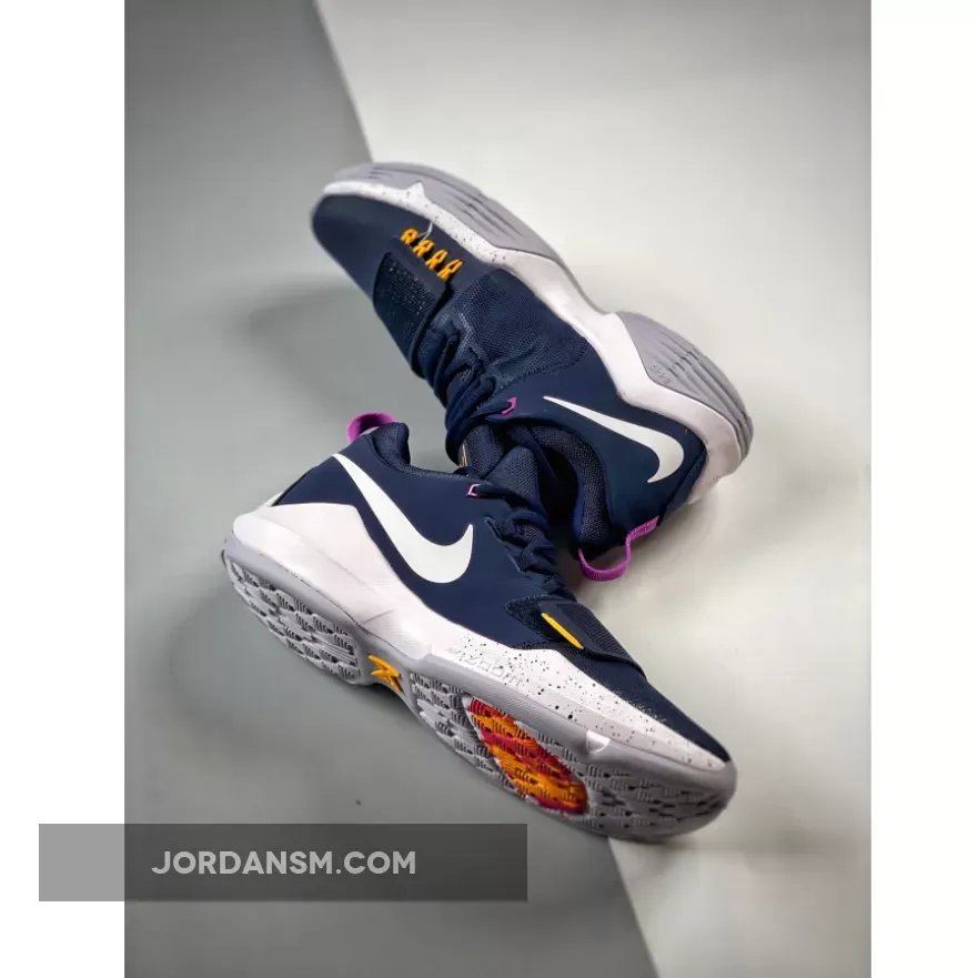 This Nike PG 1 features an Obsidian, University Gold, Hyper Violet and Wolf Grey color scheme which takes on the Indiana Pacers theme.