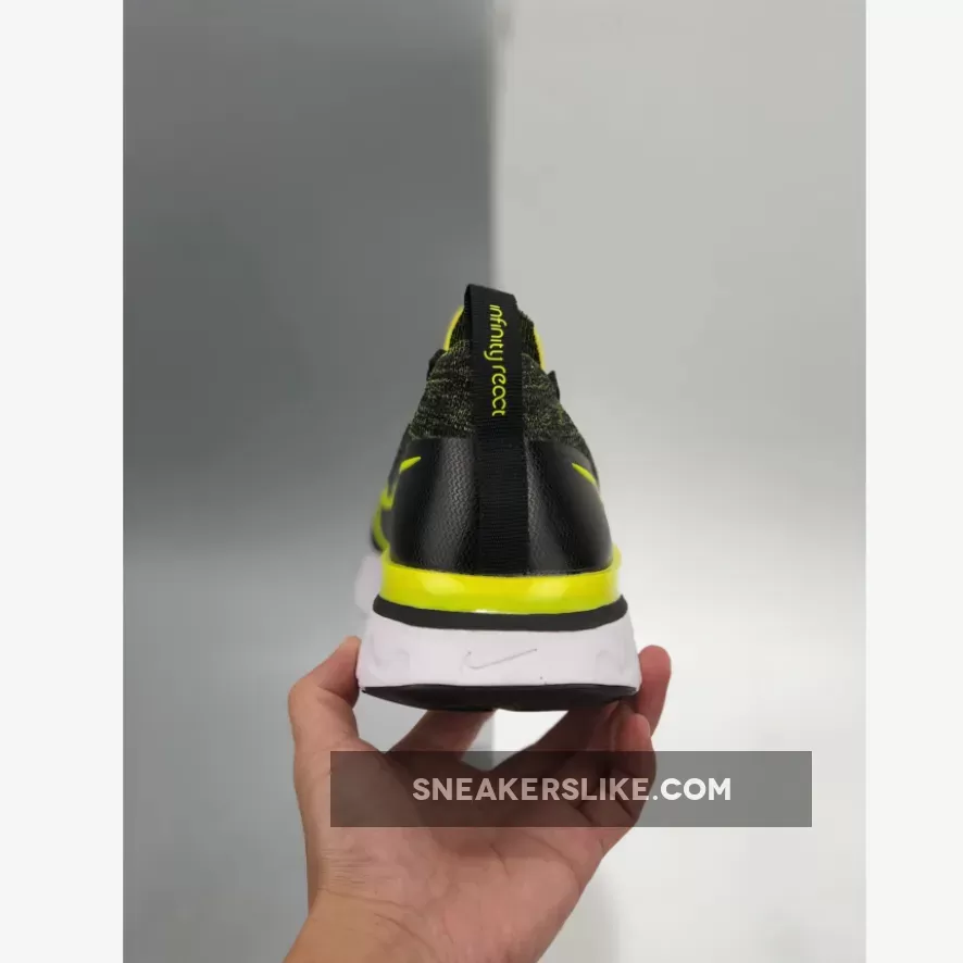 As you can see this React Infinity Run comes with Black Flyknit across the upper while Yellow detailing is spread throughout. In addition we have White on the React cushioned midsole while a Black rubber outsole completes the look.