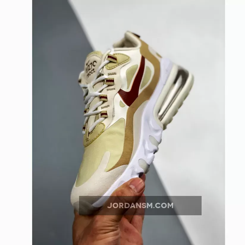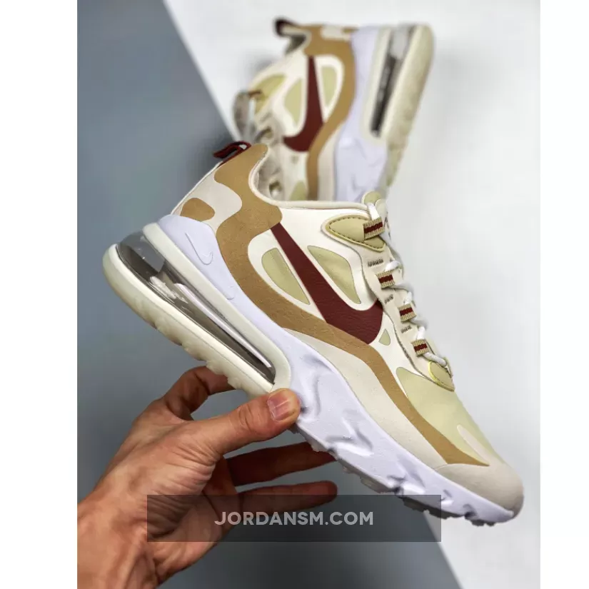 the Air Max 270 React has surely picked up some steam since its debut this summer. For its next offering, the low-top silhouette is set to arrive in a brand new white, tan, and burgundy makeover. Between its warmer tones and horse shoe graphics laid upon its insoles, these Air Maxes appear to take on an equestrian theme, calling upon similar hues from that of a barn yard building and horse’s mane. I
