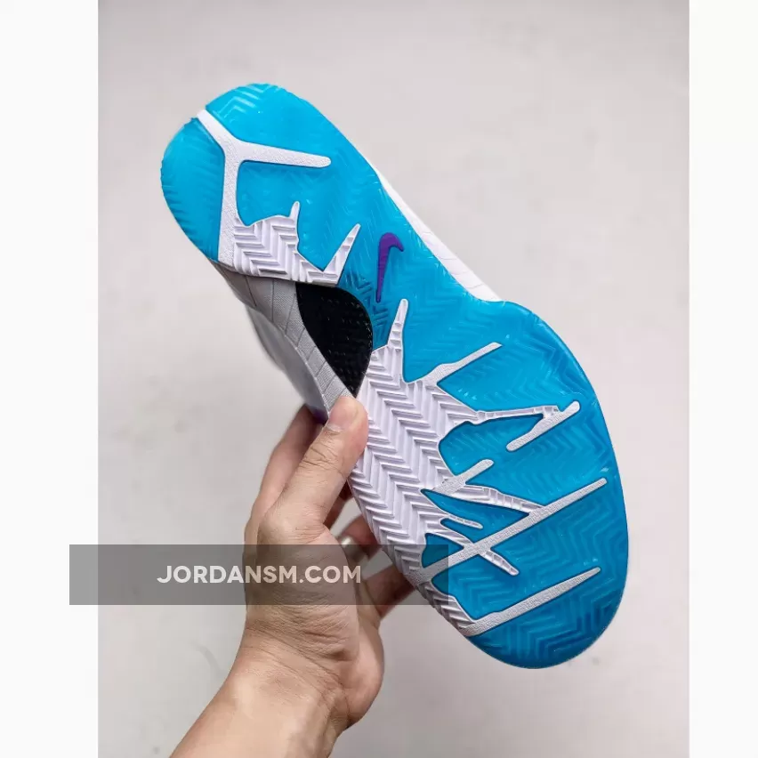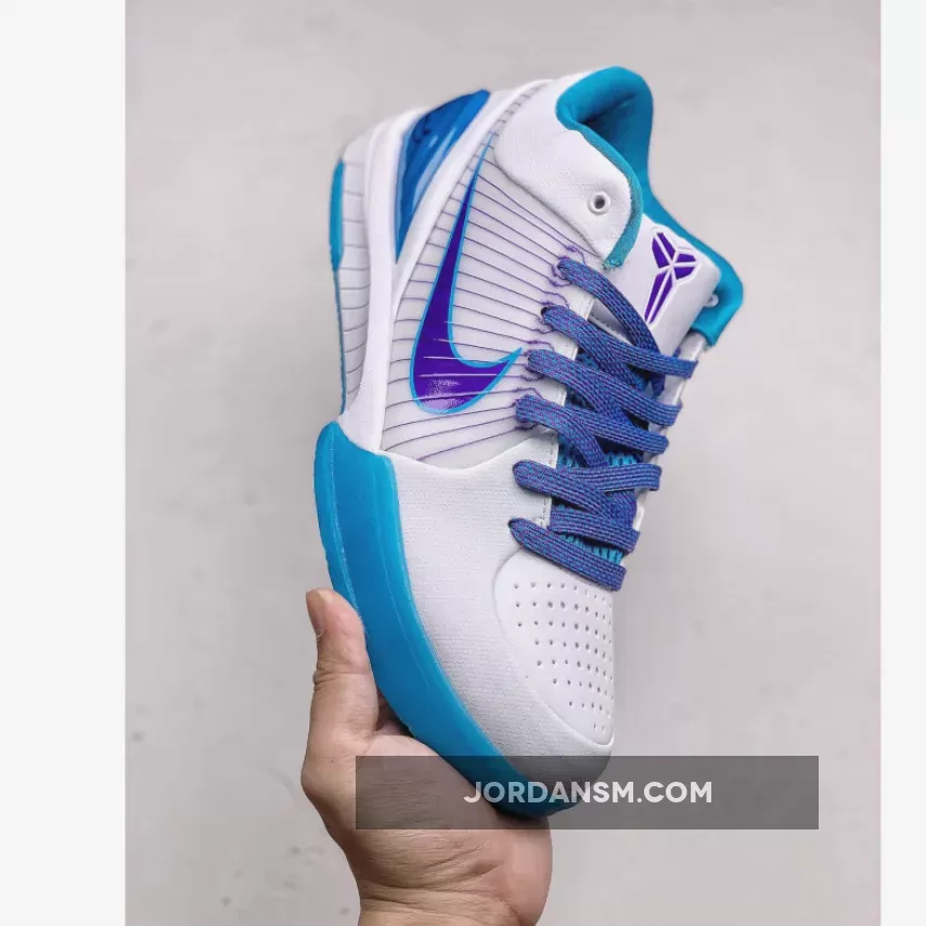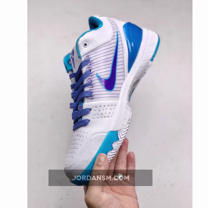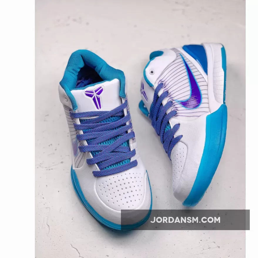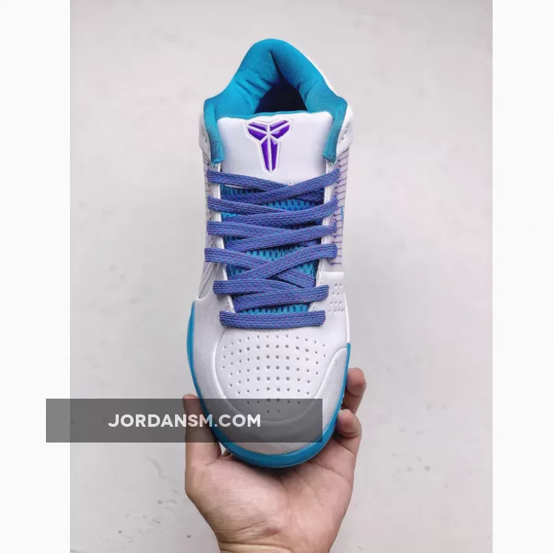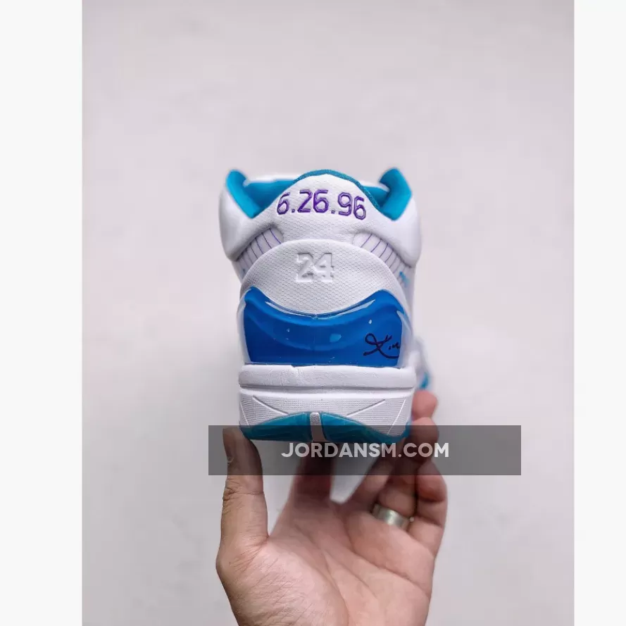 Dressed in a White, Orion Blue, and Varsity Purple color scheme. This Nike Kobe 4 Protro is expected to be the popular “Draft Day” colorway. The shoe features a White upper with Blue and Purple accents as a nod to Kobe Bryant originally being drafted by the Charlotte Hornets in 1996 before getting traded to the Los Angeles Lakers.