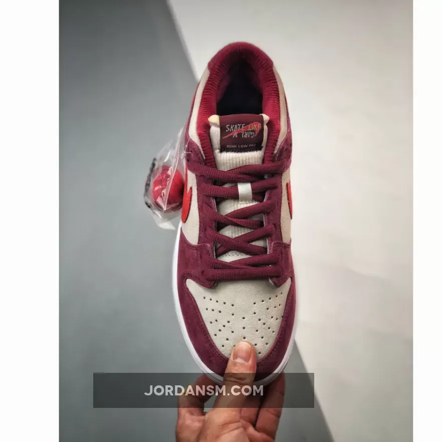 Skate Like a Girl, a nonprofit organisation empowering young women and trans people to become strong, confident leaders through skateboarding, has just partnered up with Nike to bring you the bright and bold Skate Like a Girl x Nike SB Dunk Low Red White. This Dunk Low rocks a burgundy nubuck on its overlays. Bright orange profile Swooshes sweep across both sides of the shoe with a textured stripe finish. Skate Like a Girl branding can be found on the tongue tabs accompanied by reverse Swooshes in orange., opting for subtly scored leathers. The Nike text logo is embroidered in orange on the burgundy heel tab and right below it is the Skate Like a Girl logo with two hands intertwined.
