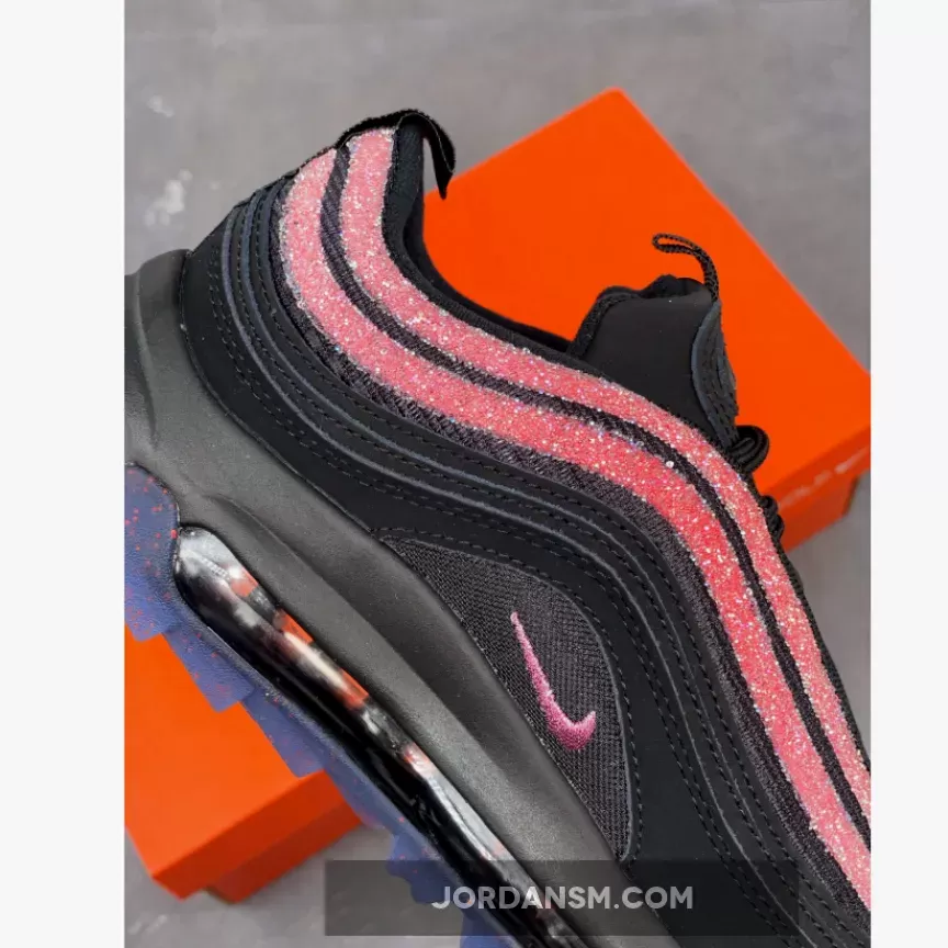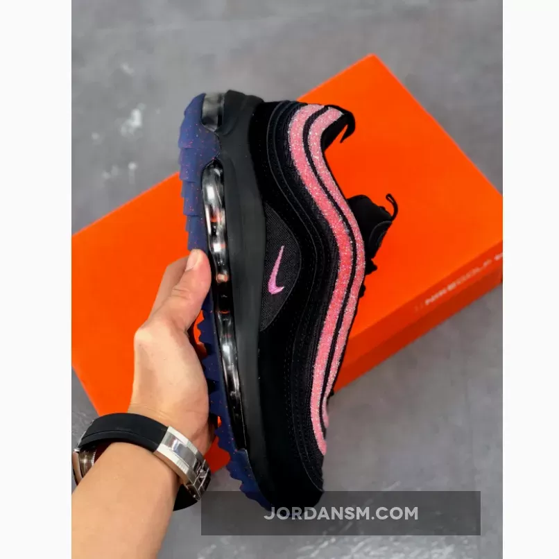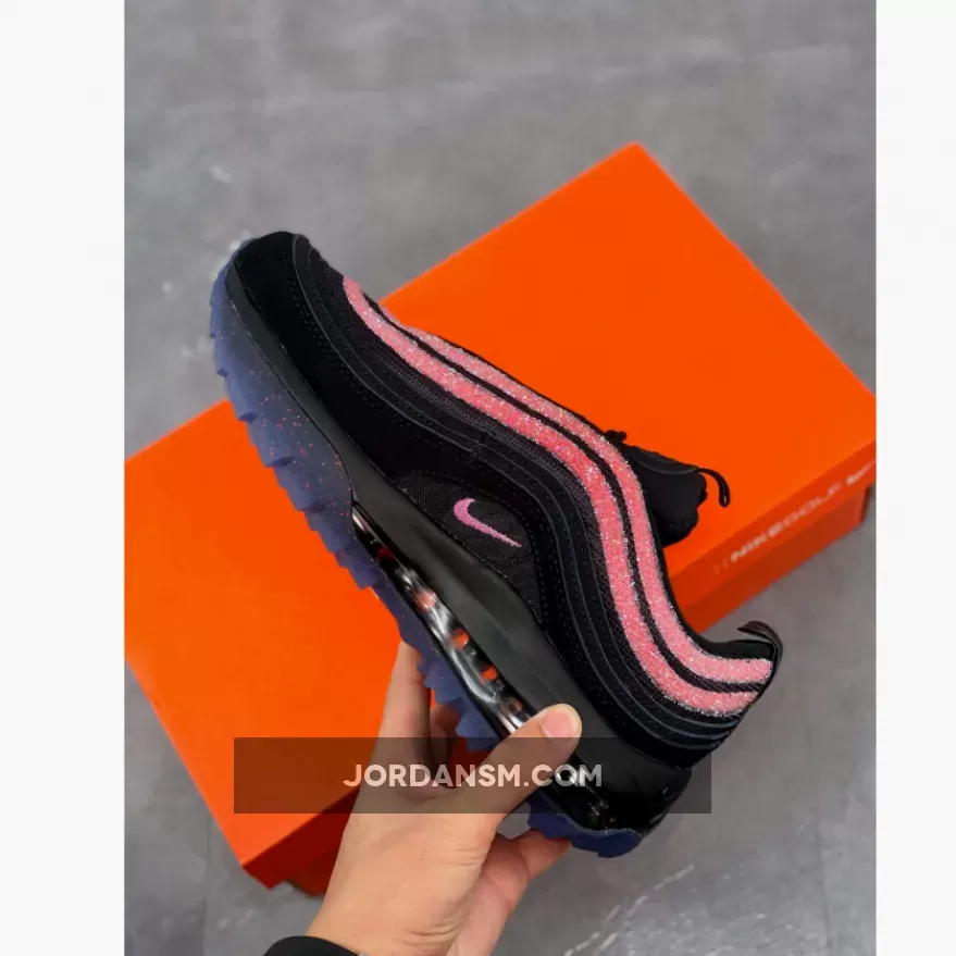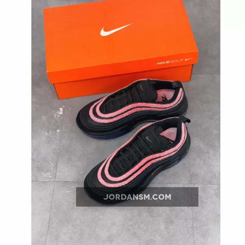 Crystal-studded Air Max 97 Golf NRG are 🔥! Love the sleek black design with pops of Oracle Pink. Perfect for stepping up your golf game in style 😎. #SwarovskiNike #SneakerQueen 👟✨