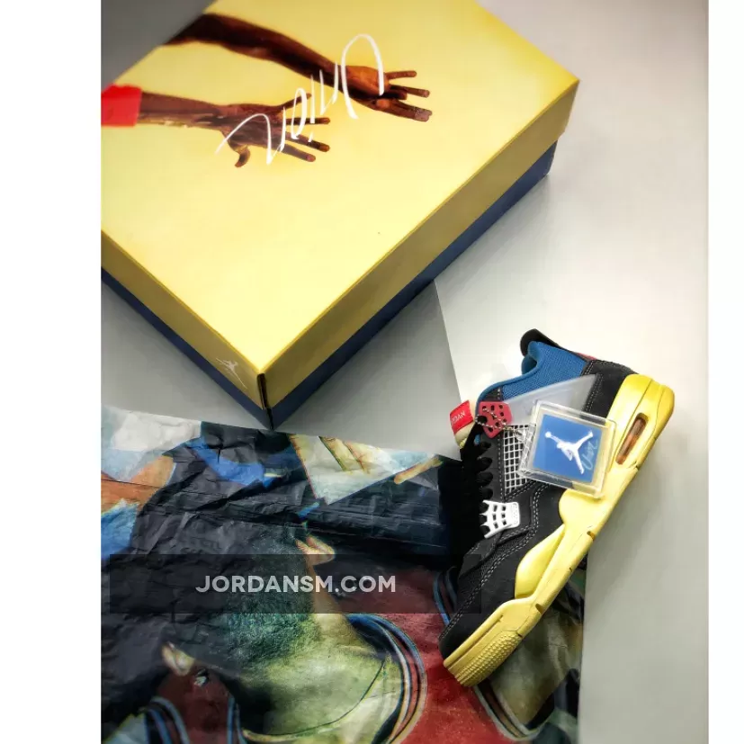 There are two color options that will be available, one dressed in “Off Noir/Brigade Blue-Dark Smoke Grey-Light Fusion Red” and the other is a Union exclusive in a “Guava Ice/Light Bone-Brigade Blue-Light Fusion Red” makeup. Both Air Jordan 4s will release alongside matching Union x Jordan apparel collection.